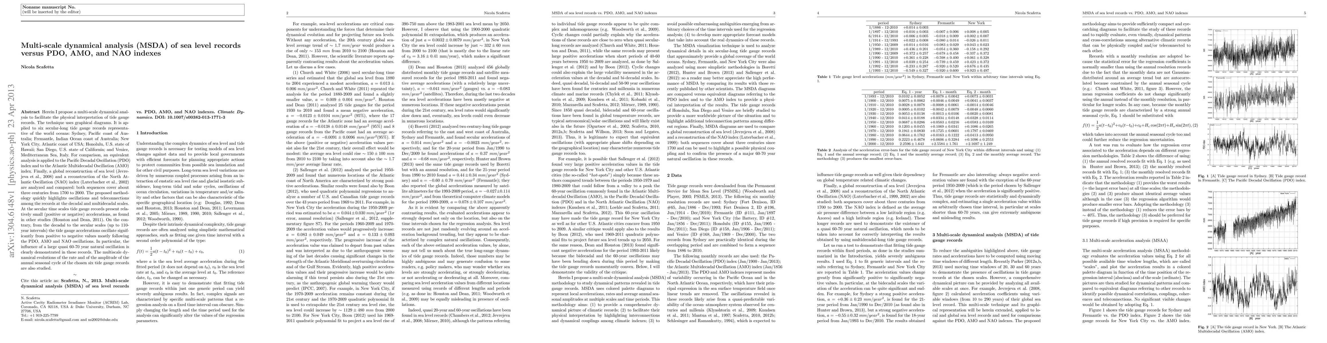 This paper proposes a multi-scale dynamical analysis (MSDA) to interpret tide gauge records, comparing six global locations with PDO, AMO, and NAO indexes. The analysis reveals significant oscillations in tide gauge accelerations aligning with decadal to multidecadal climate oscillations, highlighting a large quasi 60-70 year natural oscillation.