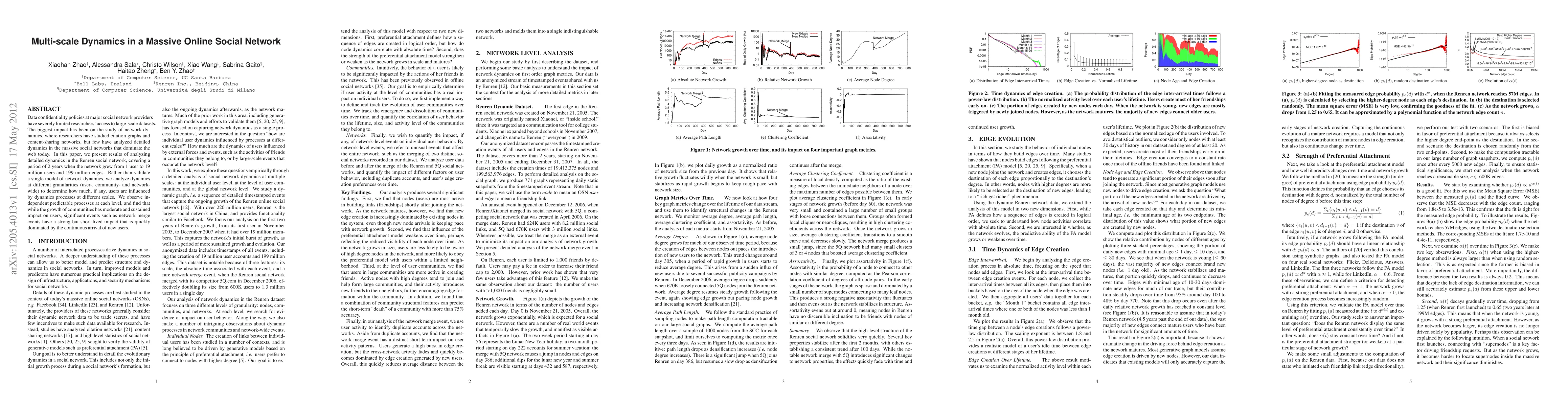 This paper analyzes the dynamics of the Renren social network over two years, revealing independent predictable processes at user, community, and network-wide levels. While community growth moderately influences users, significant events like network merges have a strong but transient impact, overshadowed by the continuous influx of new users.