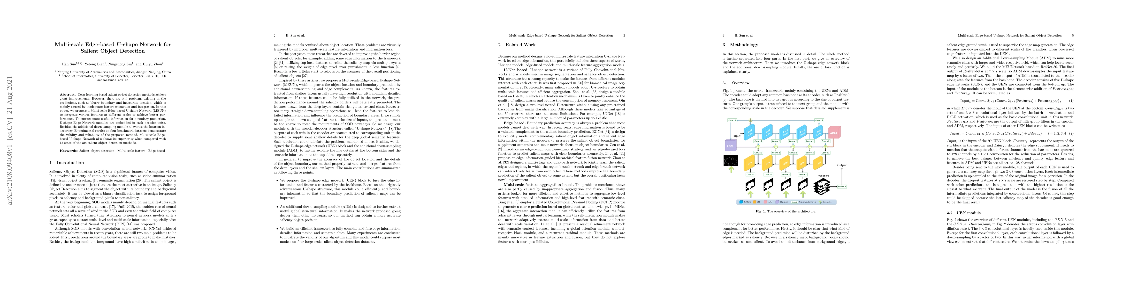This paper proposes a Multi-scale Edge-based U-shape Network (MEUN) to enhance salient object detection by integrating features at various scales. The method includes U-shape Edge Network modules and a down-sampling module to improve boundary prediction and location accuracy, outperforming 15 state-of-the-art methods on benchmark datasets.
