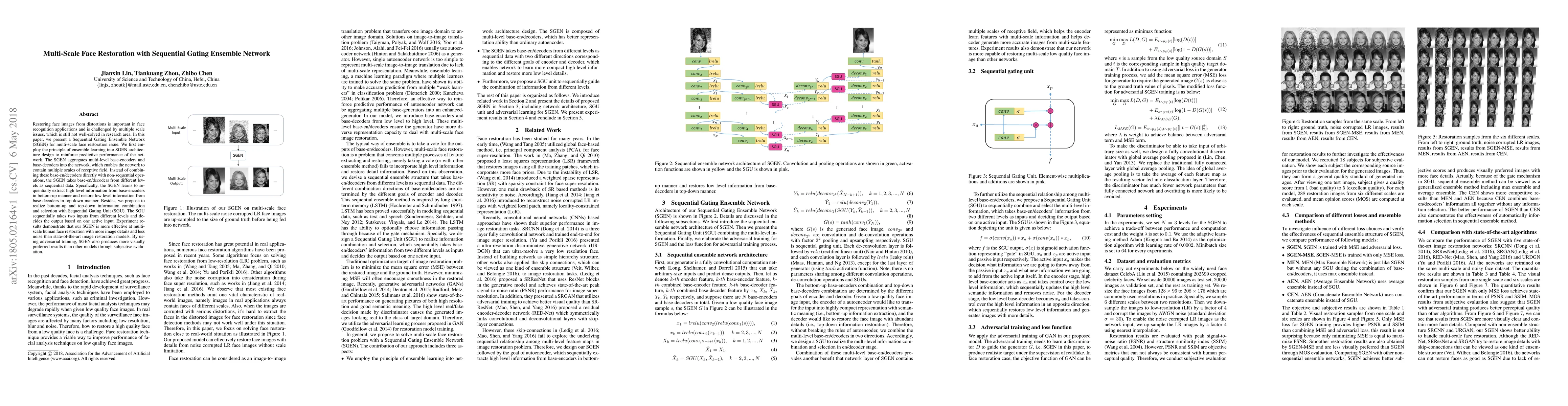 This paper proposes a Sequential Gating Ensemble Network for multi-scale face restoration, outperforming state-of-the-art models with more detailed images and reduced noise.