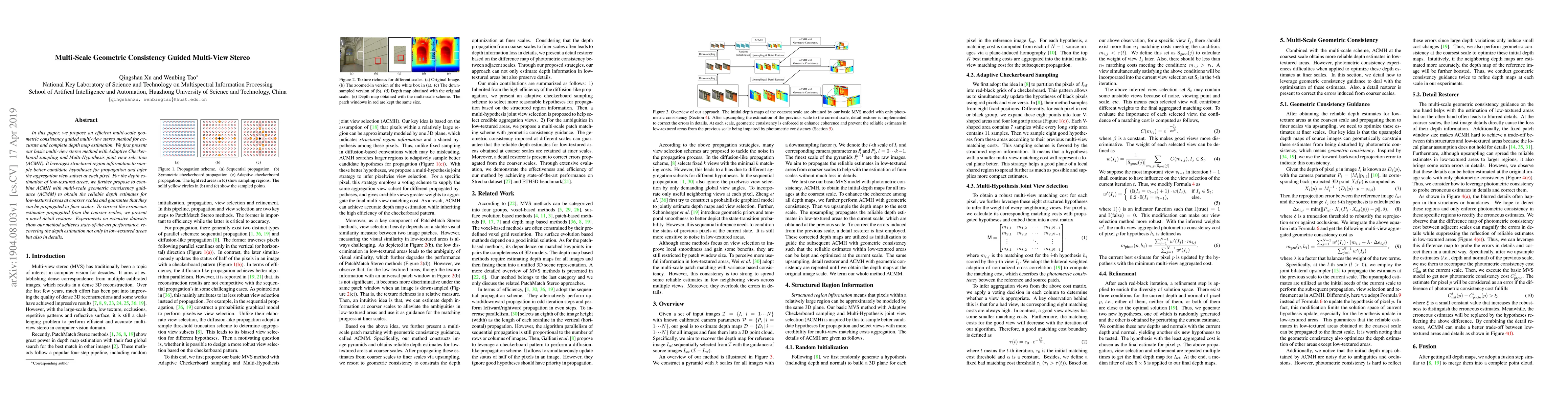 This paper presents a multi-scale geometric consistency guided multi-view stereo method (ACMM) that combines Adaptive Checkerboard sampling and Multi-Hypothesis joint view selection (ACMH) for accurate depth map estimation, especially in low-textured areas, and achieves state-of-the-art performance.