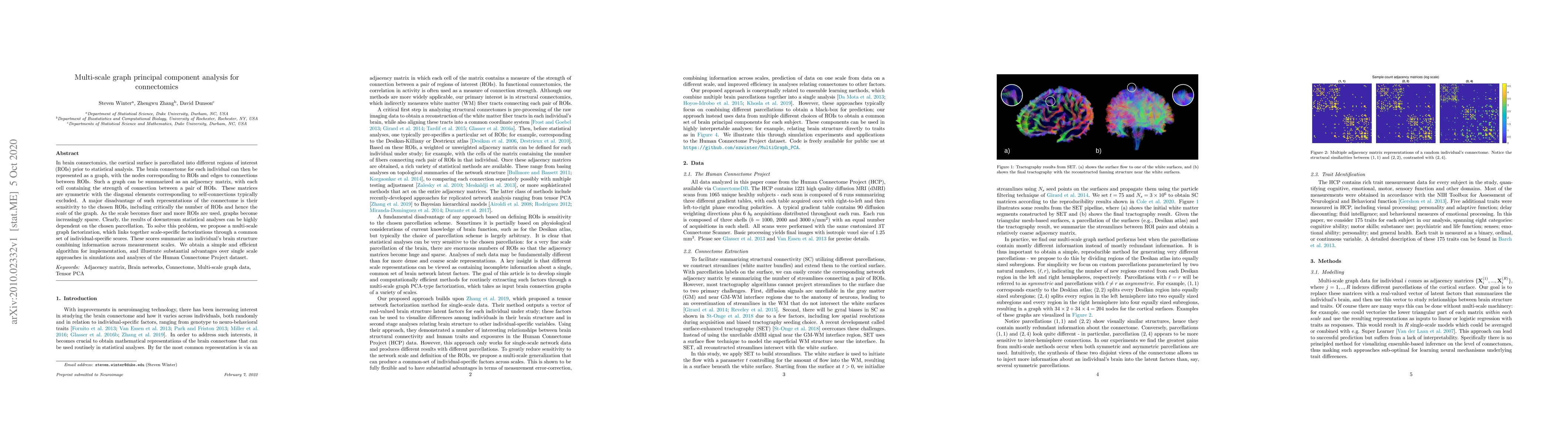 This paper proposes a multi-scale graph principal component analysis method to address the sensitivity of brain connectomics to parcellation scale. It introduces a factorization linking scale-specific decompositions to provide a more robust representation of brain structure across different measurement scales.