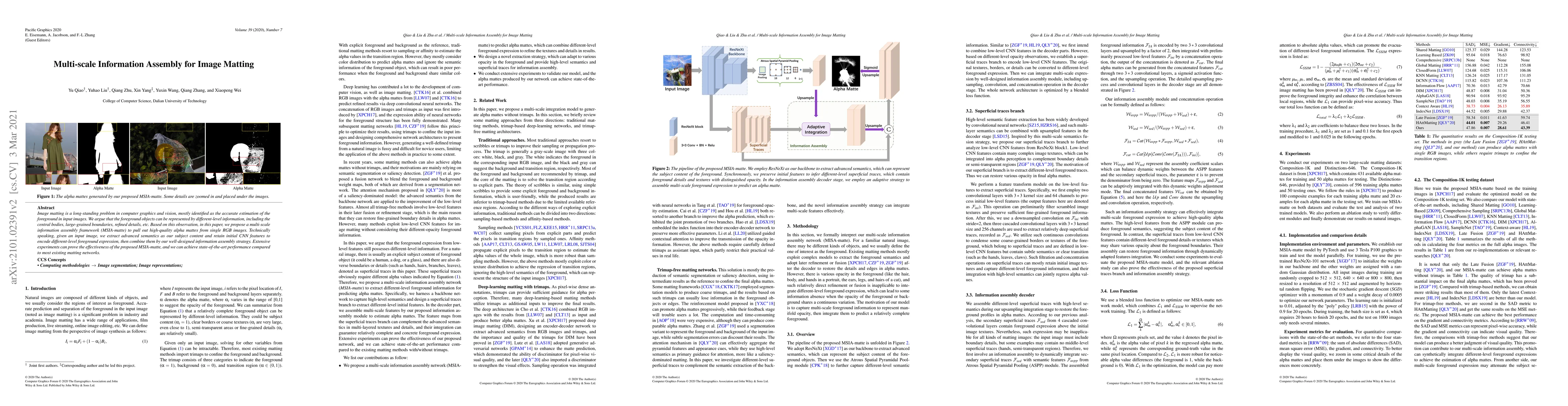 Image matting is a long-standing problem in computer graphics and vision, mostly identified as the accurate estimation of the foreground in input images. We argue that the foreground objects can be represented by different-level information, including the central bodies, large-grained boundaries, refined details, etc. Based on this observation, in this paper, we propose a multi-scale information assembly framework (MSIA-matte) to pull out high-quality alpha mattes from single RGB images. Technically speaking, given an input image, we extract advanced semantics as our subject content and retain initial CNN features to encode different-level foreground expression, then combine them by our well-designed information assembly strategy. Extensive experiments can prove the effectiveness of the proposed MSIA-matte, and we can achieve state-of-the-art performance compared to most existing matting networks.