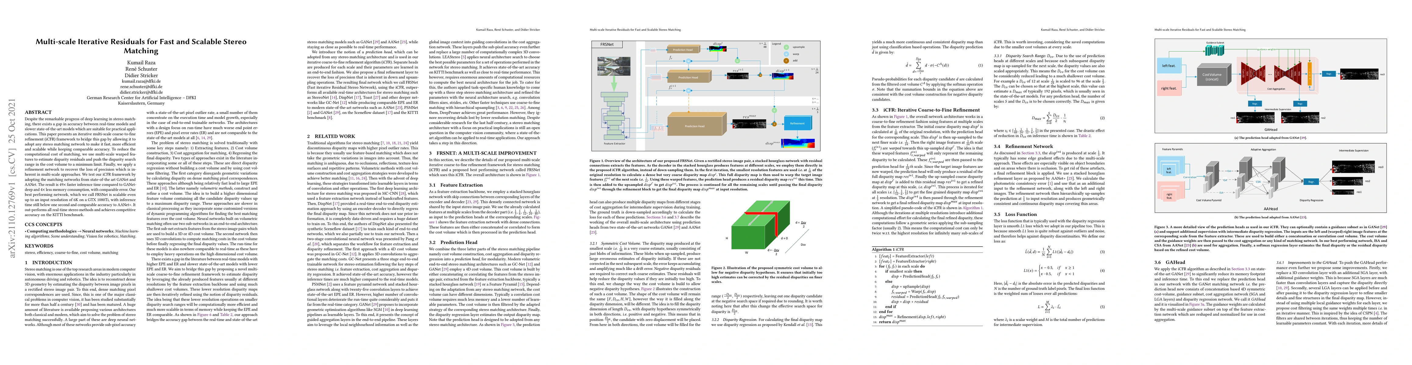 This paper introduces an iterative multi-scale coarse-to-fine refinement (iCFR) framework to enhance the speed and scalability of stereo matching networks while maintaining accuracy. The proposed method uses multi-scale warped features and a refinement network to achieve significant reductions in inference time and memory usage compared to state-of-the-art models, outperforming real-time stereo methods on the KITTI benchmark.