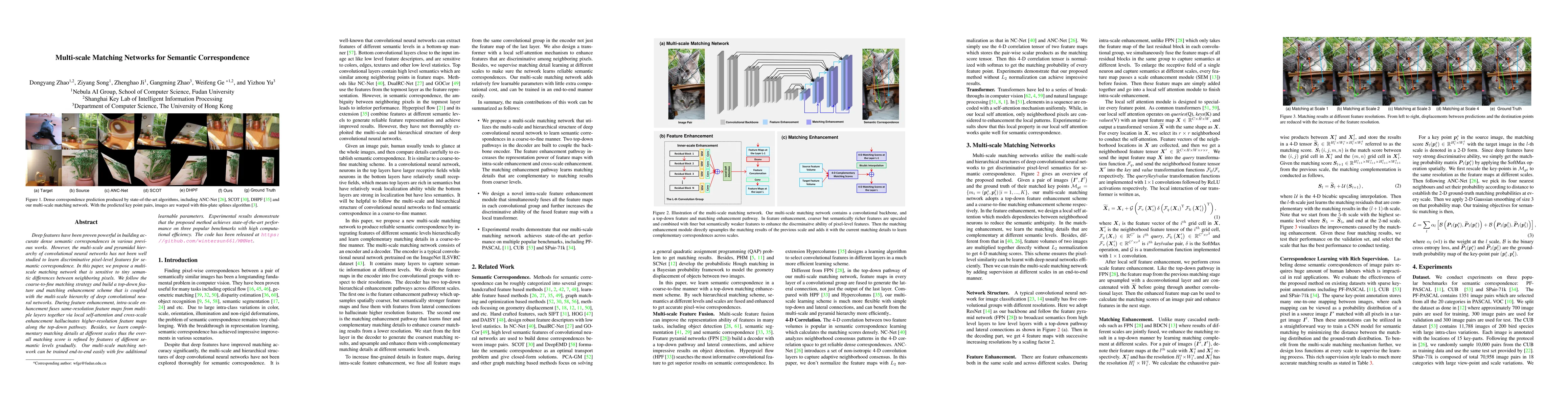 This paper proposes a multi-scale matching network that leverages convolutional neural networks' hierarchical structure to enhance pixel-level semantic correspondence, achieving state-of-the-art performance on benchmarks through a coarse-to-fine matching strategy and feature enhancement techniques.