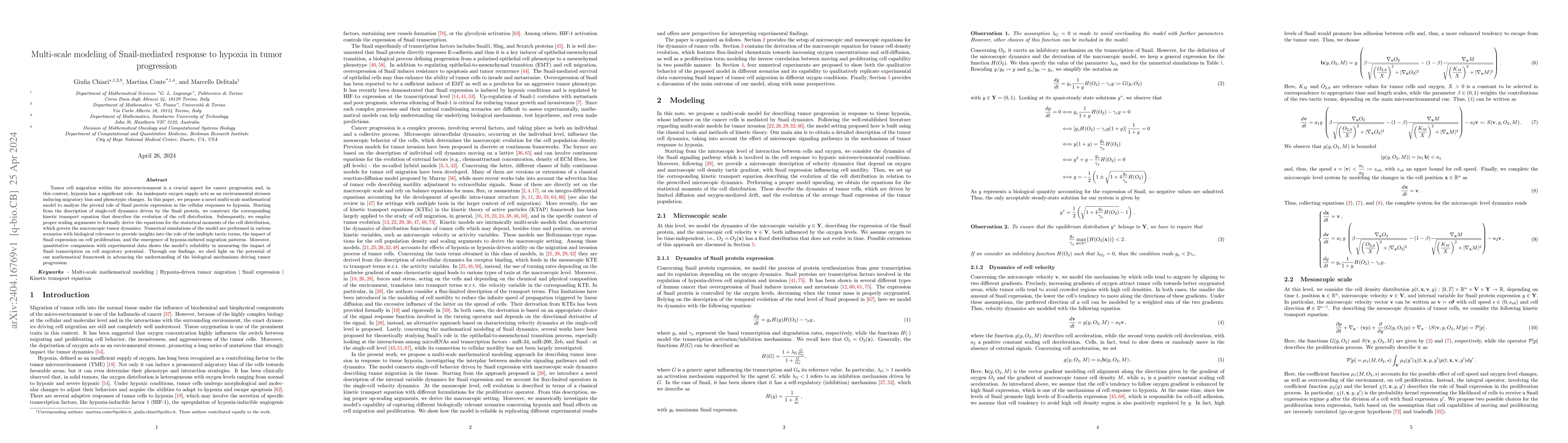 This research proposes a multi-scale mathematical model to analyze how Snail protein expression influences tumor cell migration under hypoxic conditions, providing insights into the mechanisms of cancer progression. The model links single-cell dynamics to macroscopic tumor behavior, revealing the impact of Snail on cell proliferation and migration patterns.
