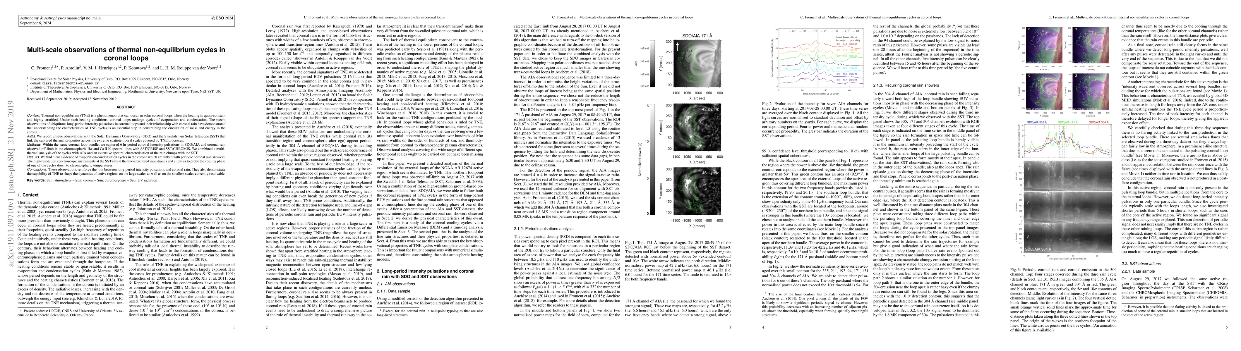 This paper reports multi-scale observations of thermal non-equilibrium cycles in solar coronal loops using the Solar Dynamics Observatory and the Swedish 1-m Solar Telescope. The study links long-period intensity pulsations and periodic coronal rain showers, demonstrating the dynamics of evaporation-condensation cycles and their impact on the mass and energy circulation in the corona.