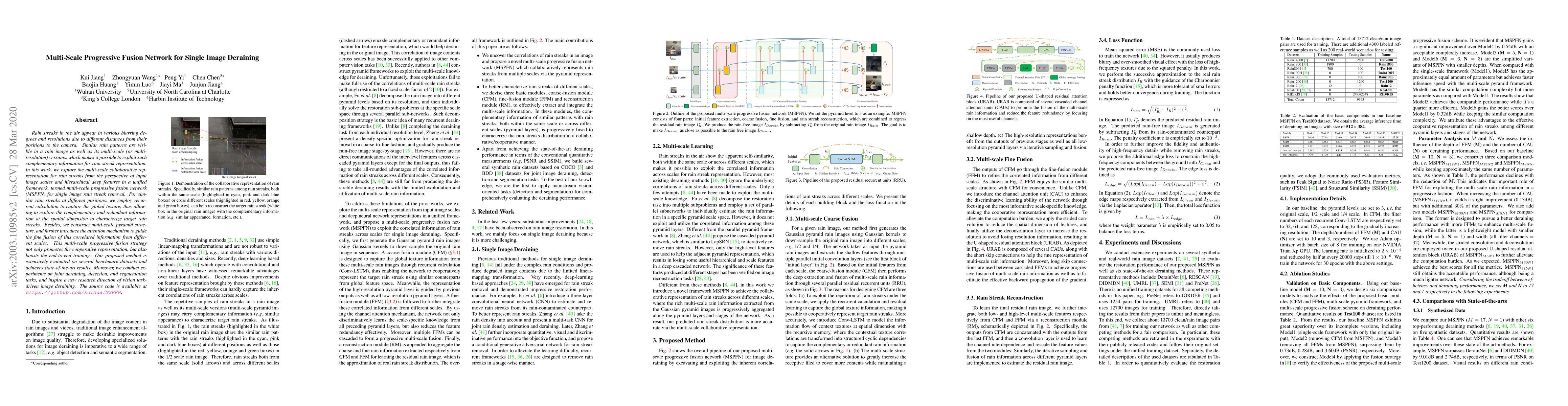 The paper proposes a multi-scale progressive fusion network (MSPFN) for single image deraining, utilizing multi-scale representations and hierarchical deep features to effectively remove rain streaks. The method achieves state-of-the-art results on benchmark datasets and explores new research directions in vision task-driven deraining.