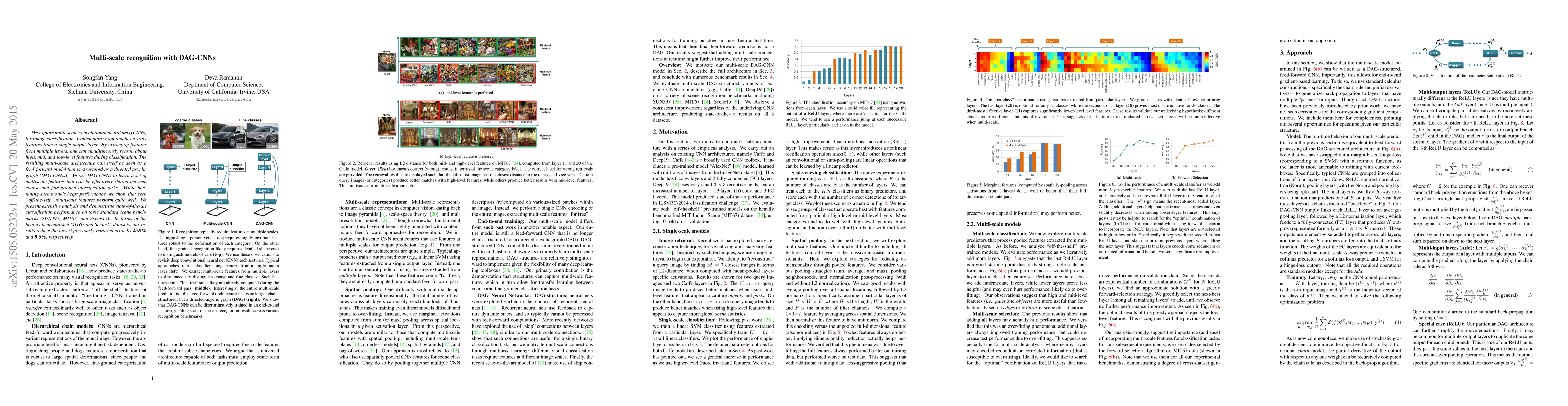 We explore multi-scale convolutional neural nets (CNNs) for image classification. Contemporary approaches extract features from a single output layer. By extracting features from multiple layers, one can simultaneously reason about high, mid, and low-level features during classification. The resulting multi-scale architecture can itself be seen as a feed-forward model that is structured as a directed acyclic graph (DAG-CNNs). We use DAG-CNNs to learn a set of multiscale features that can be effectively shared between coarse and fine-grained classification tasks. While fine-tuning such models helps performance, we show that even "off-the-self" multiscale features perform quite well. We present extensive analysis and demonstrate state-of-the-art classification performance on three standard scene benchmarks (SUN397, MIT67, and Scene15). In terms of the heavily benchmarked MIT67 and Scene15 datasets, our results reduce the lowest previously-reported error by 23.9% and 9.5%, respectively.