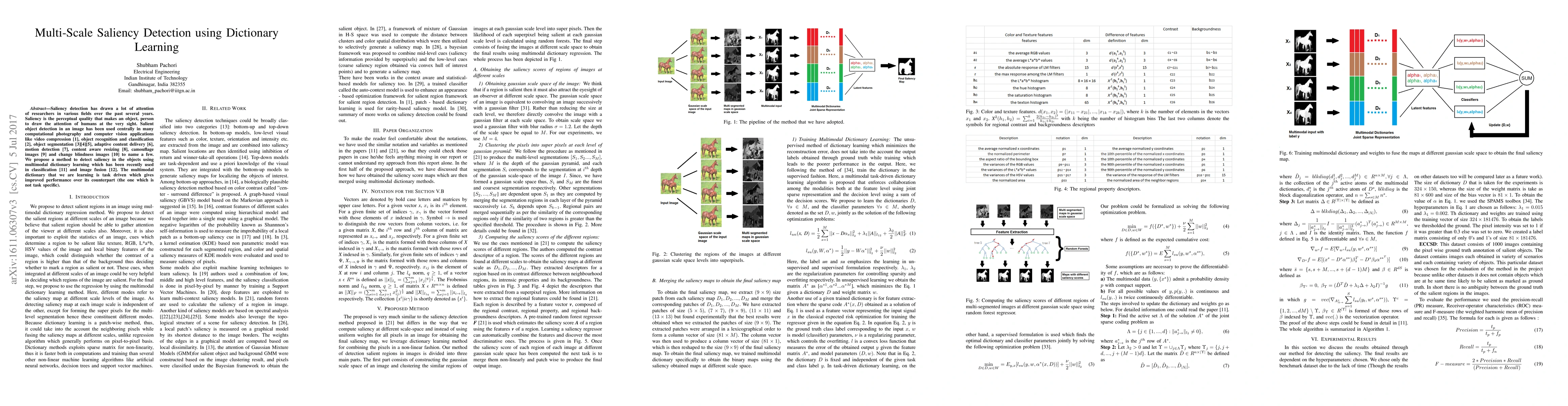 This paper proposes a method for multi-scale saliency detection using task-driven multimodal dictionary learning, which enhances performance compared to non-task-specific dictionaries, aiding applications in computational photography and computer vision.