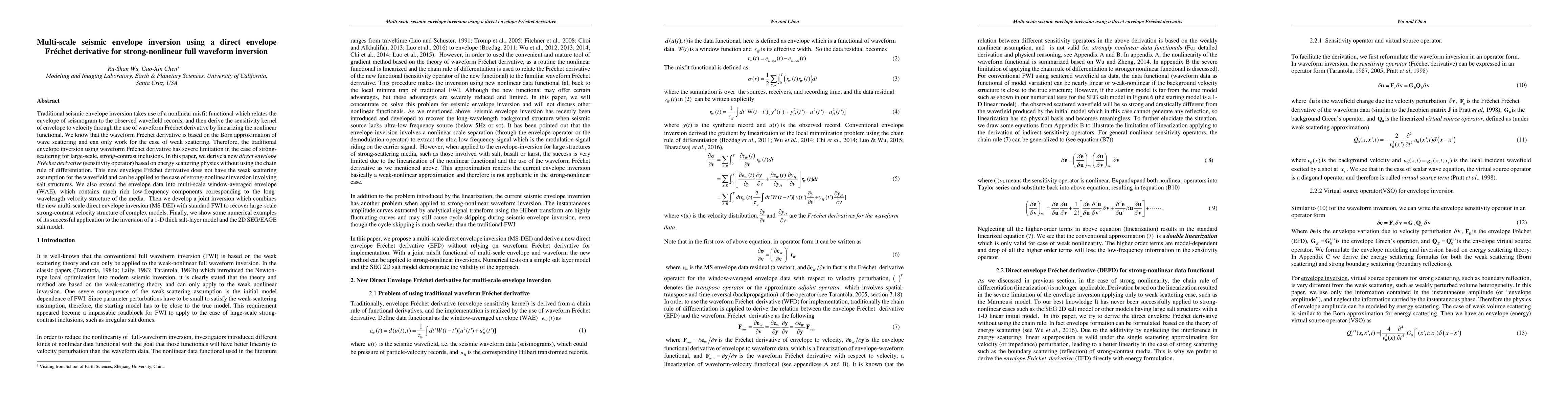 Traditional seismic envelope inversion takes use of a nonlinear misfit functional which relates the envelope of seismogram to the observed wavefield records, and then derive the sensitivity kernel of envelope to velocity through the use of waveform Frechet derivative by linearizing the nonlinear functional. We know that the waveform Frechet derivative is based on the Born approximation of wave scattering and can only work for the case of weak scattering. Therefore, the traditional envelope inversion using waveform Frechet derivative has severe limitation in the case of strong-scattering for large-scale, strong-contrast inclusions. In this paper, we derive a new direct envelope Frechet derivative (sensitivity operator) based on energy scattering physics without using the chain rule of differentiation. This new envelope Frechet derivative does not have the weak scattering assumption for the wavefield and can be applied to the case of strong-nonlinear inversion involving salt structures. We also extend the envelope data into multi-scale window-averaged envelope (WAE), which contains much rich low-frequency components corresponding to the long-wavelength velocity structure of the media. Then we develop a joint inversion which combines the new multi-scale direct envelope inversion (MS-DEI) with standard FWI to recover large-scale strong-contrast velocity structure of complex models. Finally, we show some numerical examples of its successful application to the inversion of a 1-D thick salt-layer model and the 2D SEG/EAGE salt model.
