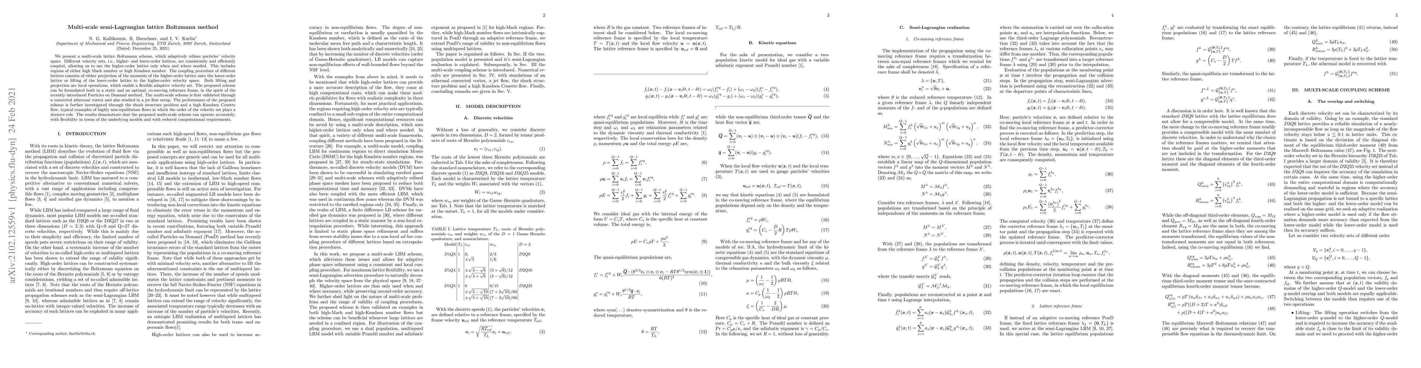 We present a multi-scale lattice Boltzmann scheme, which adaptively refines particles' velocity space. Different velocity sets, i.e., higher- and lower-order lattices, are consistently and efficiently coupled, allowing us to use the higher-order lattice only when and where needed. This includes regions of either high Mach number or high Knudsen number. The coupling procedure of different lattices consists of either projection of the moments of the higher-order lattice onto the lower-order lattice or lifting of the lower-order lattice to the higher-order velocity space. Both lifting and projection are local operations, which enable a flexible adaptive velocity set. The proposed scheme can be formulated both in a static and an optimal, co-moving reference frame, in the spirit of the recently introduced Particles on Demand method. The multi-scale scheme is first validated through a convected athermal vortex and also studied in a jet flow setup. The performance of the proposed scheme is further investigated through the shock structure problem and a high Knudsen Couette flow, typical examples of highly non-equilibrium flows in which the order of the velocity set plays a decisive role. The results demonstrate that the proposed multi-scale scheme can operate accurately, with flexibility in terms of the underlying models and with reduced computational requirements.