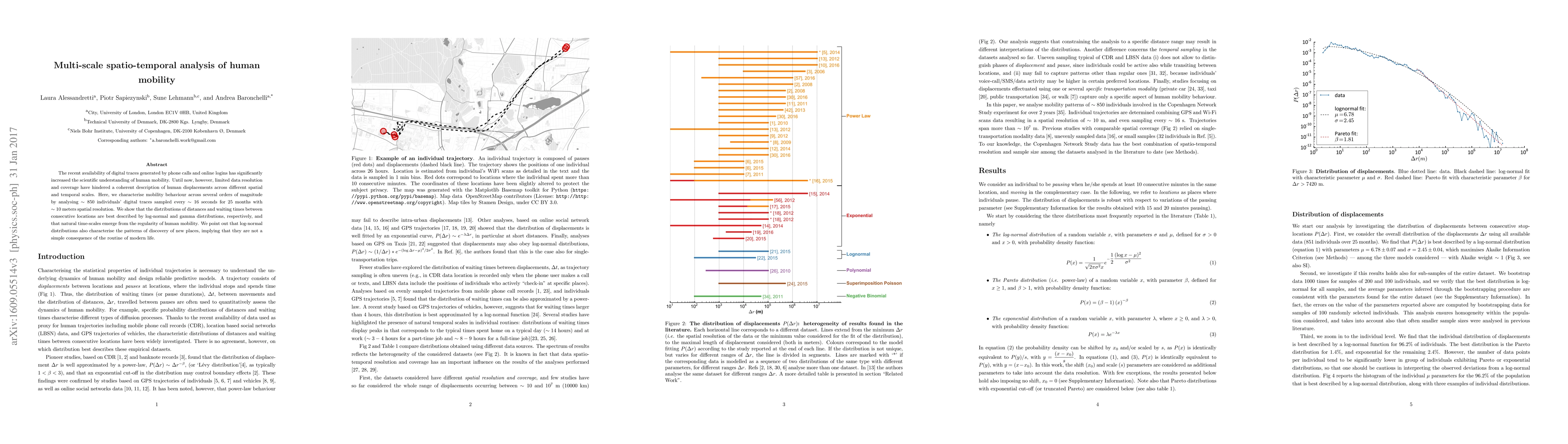 The recent availability of digital traces generated by phone calls and online logins has significantly increased the scientific understanding of human mobility. Until now, however, limited data resolution and coverage have hindered a coherent description of human displacements across different spatial and temporal scales. Here, we characterise mobility behaviour across several orders of magnitude by analysing ~850 individuals' digital traces sampled every ~16 seconds for 25 months with ~10 meters spatial resolution. We show that the distributions of distances and waiting times between consecutive locations are best described by log-normal distributions and that natural time-scales emerge from the regularity of human mobility. We point out that log-normal distributions also characterise the patterns of discovery of new places, implying that they are not a simple consequence of the routine of modern life.