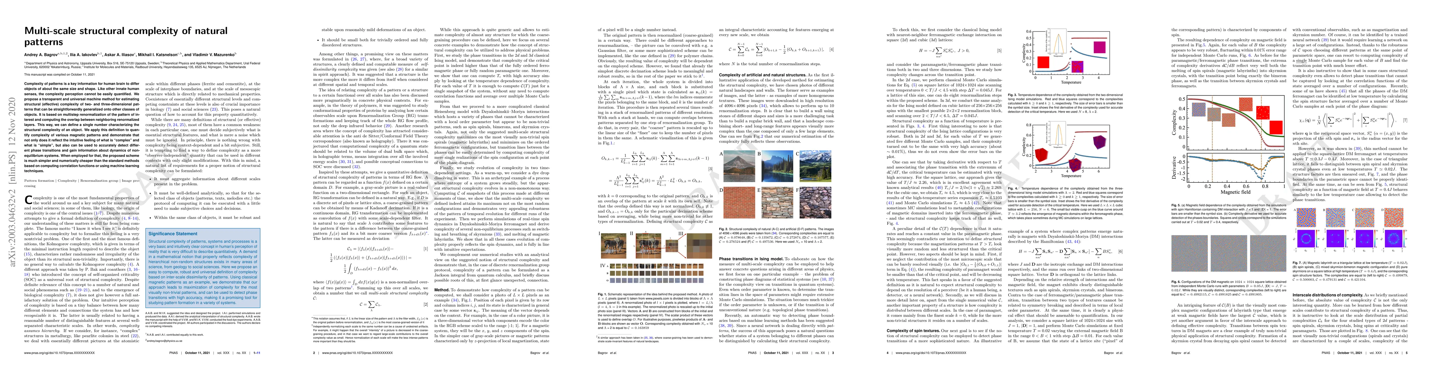 Complexity of patterns is a key information for human brain to differ objects of about the same size and shape. Like other innate human senses, the complexity perception cannot be easily quantified. We propose a transparent and universal machine method for estimating structural (effective) complexity of two- and three-dimensional patterns that can be straightforwardly generalized onto other classes of objects. It is based on multi-step renormalization of the pattern of interest and computing the overlap between neighboring renormalized layers. This way, we can define a single number characterizing the structural complexity of an object. We apply this definition to quantify complexity of various magnetic patterns and demonstrate that not only does it reflect the intuitive feeling of what is "complex" and what is "simple", but also can be used to accurately detect different phase transitions and gain information about dynamics of non-equilibrium systems. When employed for that, the proposed scheme is much simpler and numerically cheaper than the standard methods based on computing correlation functions or using machine learning techniques.