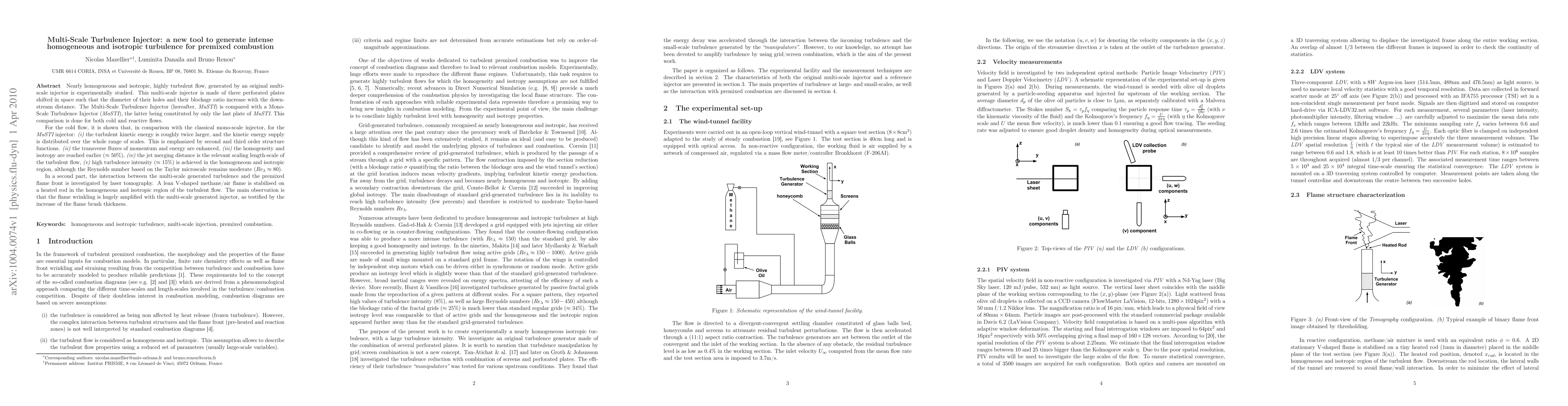 The Multi-Scale Turbulence Injector (MuSTI) generates intense, homogeneous, and isotropic turbulence compared to a Mono-Scale Turbulence Injector (MoSTI), achieving higher turbulent kinetic energy and better flow distribution across scales. The interaction with a premixed flame shows significantly amplified flame wrinkling and increased flame brush thickness.