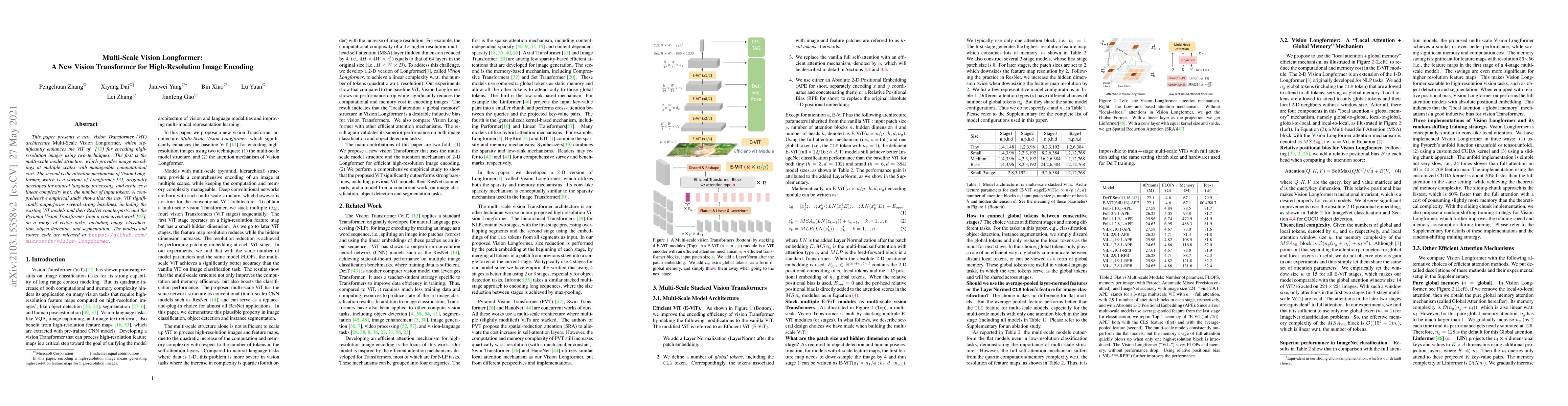 This paper introduces a new Vision Transformer architecture called Multi-Scale Vision Longformer, which enhances high-resolution image encoding through multi-scale model structures and a Longformer attention mechanism. The proposed model outperforms existing Vision Transformers and ResNets on various vision tasks.