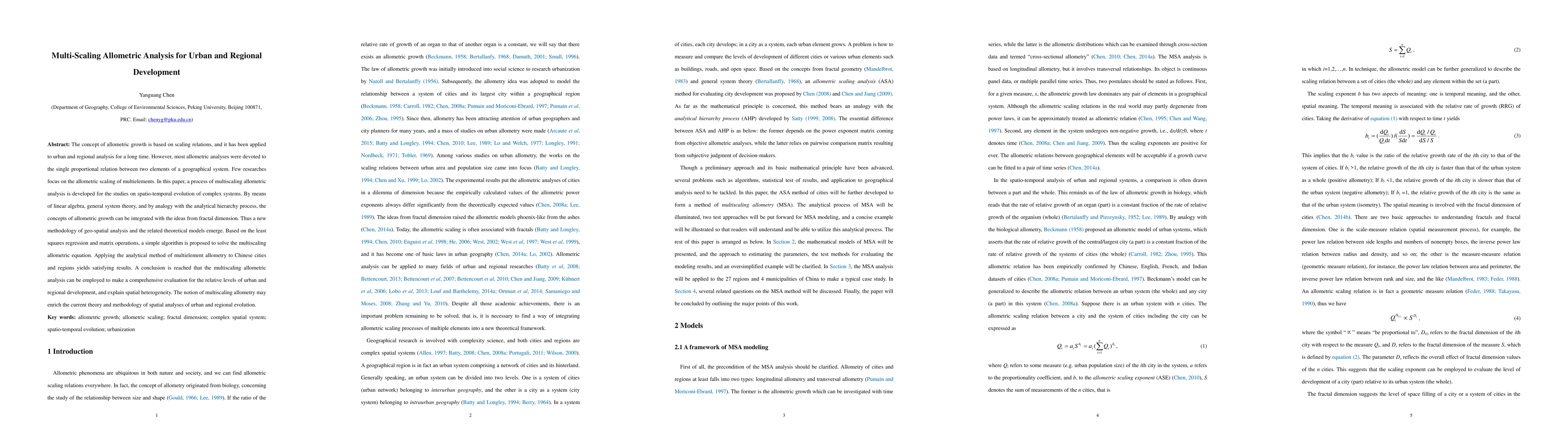 This paper develops a multiscaling allometric analysis methodology for evaluating urban and regional development, integrating linear algebra and general system theory. It proposes an algorithm based on least squares regression and matrix operations to solve multiscaling allometric equations, demonstrating its applicability and effectiveness in assessing spatial heterogeneity in Chinese cities and regions.