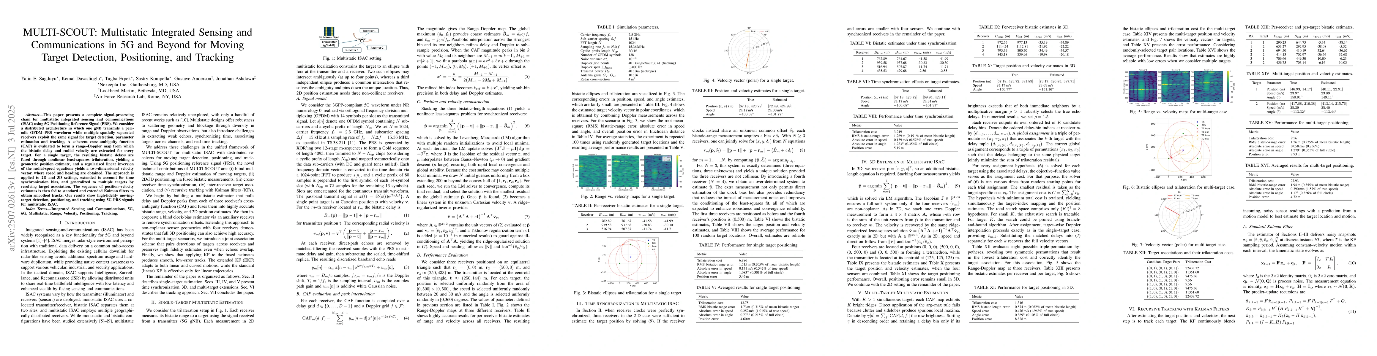 This paper introduces a method using 5G PRS signals for multistatic integrated sensing and communications (ISAC), enabling high-accuracy moving target detection, positioning, and tracking. The approach involves creating range-Doppler maps from coherent cross-ambiguity functions, fusing data for precise position and velocity estimation, and applying Kalman filters for smoother tracks.
