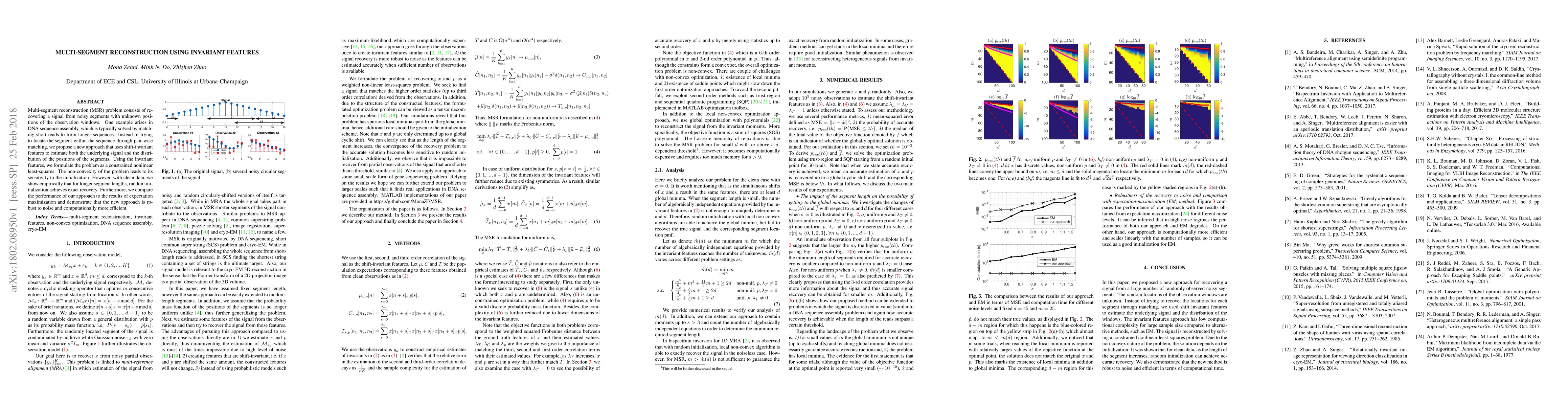 Researchers propose a new approach for multi-segment reconstruction using invariant features, which estimates both signal and segment positions in noisy data with high efficiency and robustness.