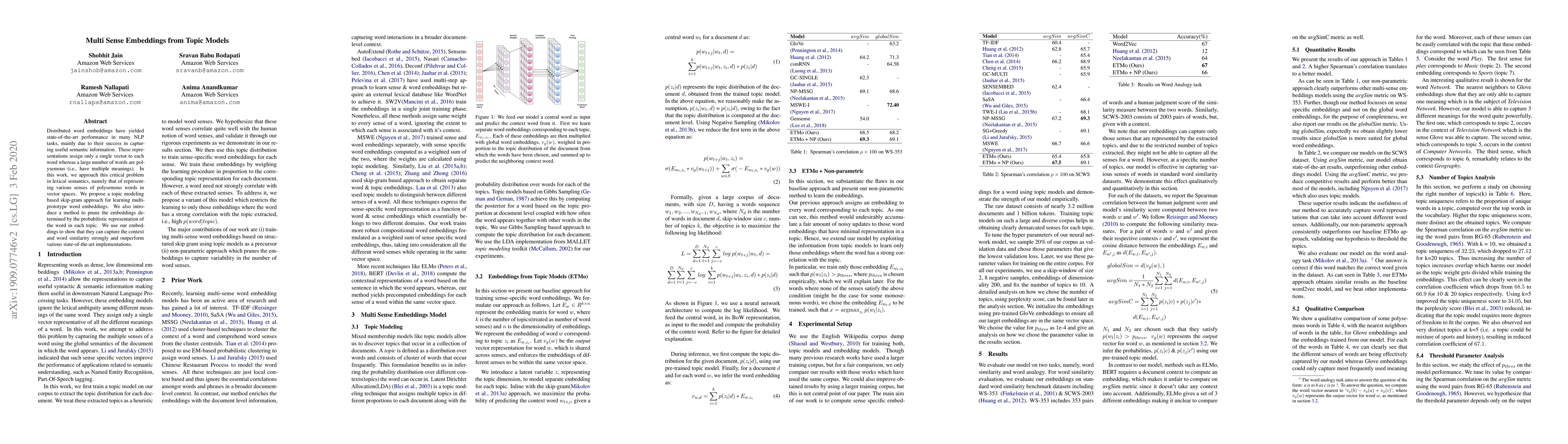 This paper proposes a topic modeling-based skip-gram method to learn multi-prototype word embeddings for polysemous words, addressing the challenge of capturing multiple meanings. The approach outperforms existing methods in capturing context and word similarity.