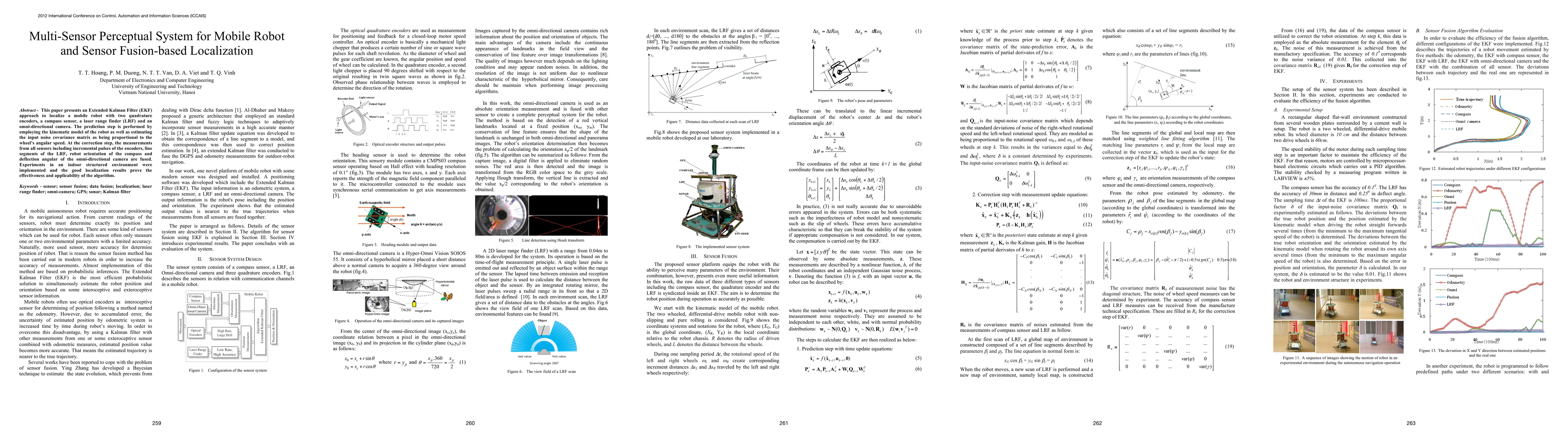 This paper proposes an Extended Kalman Filter (EKF) for mobile robot localization using multiple sensors, including encoders, a compass, a laser range finder, and an omni-directional camera. The algorithm effectively fuses sensor data to achieve accurate localization in indoor environments.