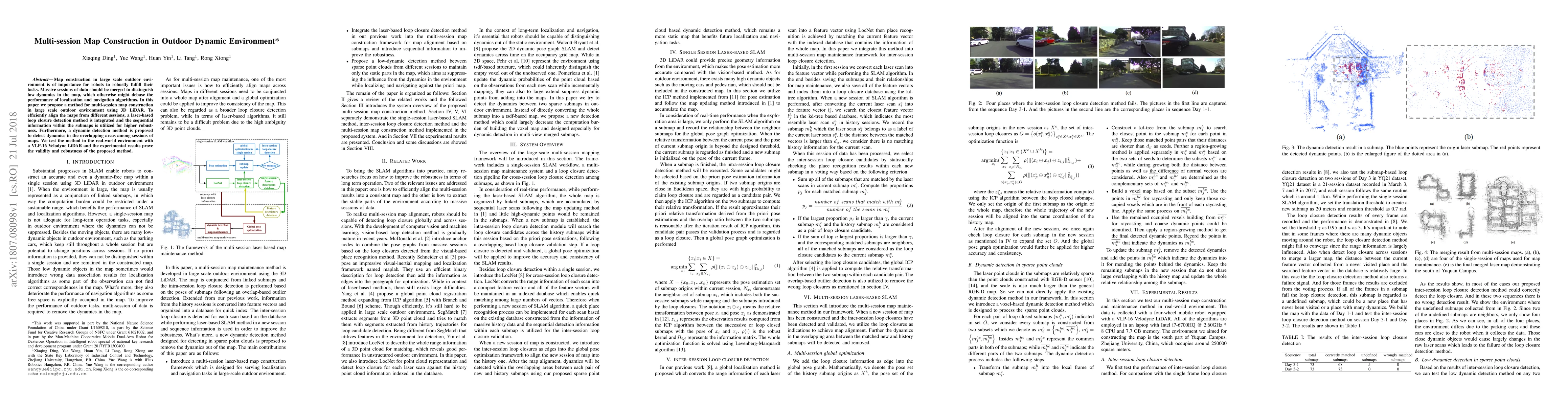 This paper proposes a method for constructing multi-session maps in large-scale outdoor environments using 3D LiDAR, integrating laser-based loop closure detection and dynamic detection to enhance robustness and accuracy in localization and navigation. Experimental results demonstrate the effectiveness of the method in real-world settings.