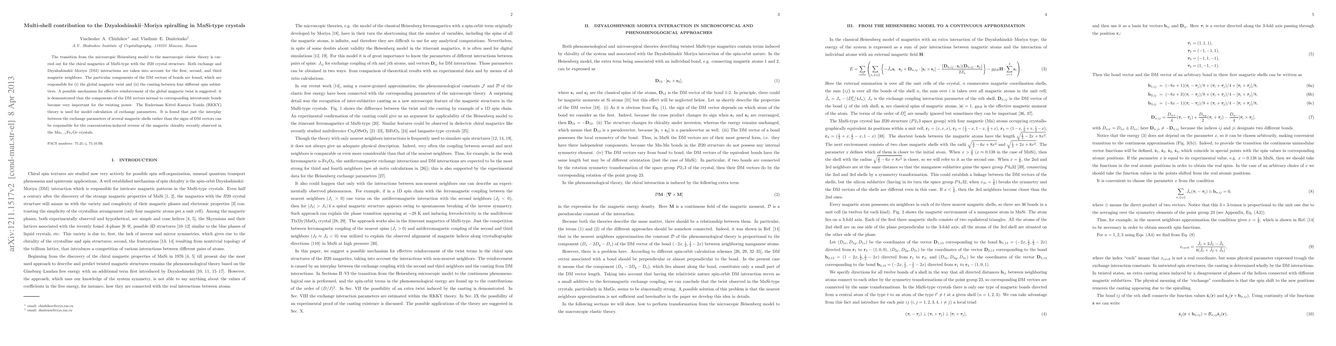 The transition from the microscopic Heisenberg model to the macroscopic elastic theory is carried out for the chiral magnetics of MnSi-type with the B20 crystal structure. Both exchange and Dzyaloshinskii-Moriya (DM) interactions are taken into account for the first, second, and third magnetic neighbors. The particular components of the DM vectors of bonds are found, which are responsible for (i) the global magnetic twist and (ii) the canting between four different spin sublattices. A possible mechanism for effective reinforcement of the global magnetic twist is suggested: it is demonstrated that the components of the DM vectors normal to corresponding interatomic bonds become very important for the twisting power. The Ruderman-Kittel-Kasuya-Yosida (RKKY) theory is used for model calculation of exchange parameters. It is found that just the interplay between the exchange parameters of several magnetic shells rather than the signs of DM vectors can be responsible for the concentration-induced reverse of the magnetic chirality recently observed in the Mn_(1-x)Fe_xGe crystals.