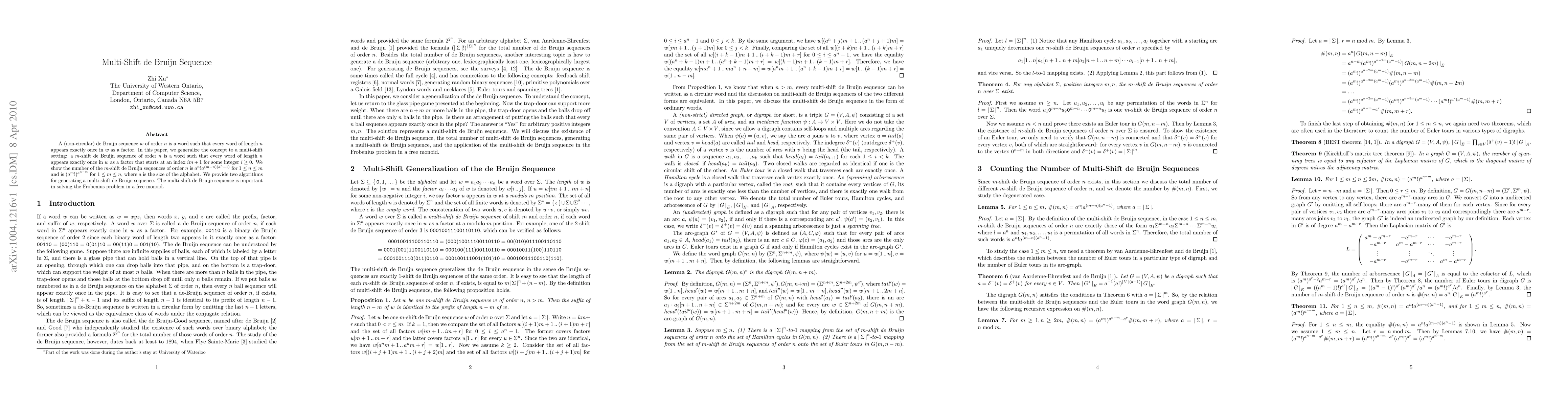 The paper introduces the concept of multi-shift de Bruijn sequences and provides formulas for counting them, along with two algorithms for their generation.