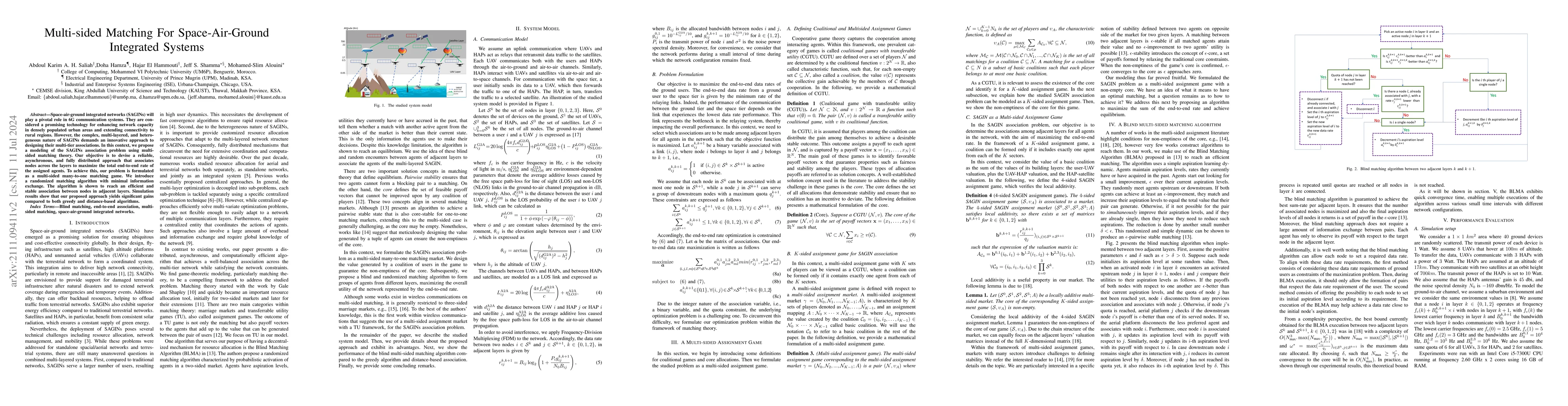 Space-air-ground integrated networks (SAGINs) will play a key role in 6G communication systems. They are considered a promising technology to enhance the network capacity in highly dense agglomerations and to provide connectivity in rural areas. The multi-layer and heterogeneous nature of SAGINs necessitates an innovative design of their multi-tier associations. We propose a modeling of the SAGINs association problem using multi-sided matching theory. Our aim is to provide a reliable, asynchronous and fully distributed approach that associates nodes across the layers so that the total end-to-end rate of the assigned agents is maximized. To this end, our problem is modeled as a multi-sided many-to-one matching game. A randomized matching algorithm with low information exchange is proposed. The algorithm is shown to reach an efficient and stable association between nodes in adjacent layers. Our simulation results show that the proposed approach achieves significant gain compared to the greedy and distance-based algorithms.