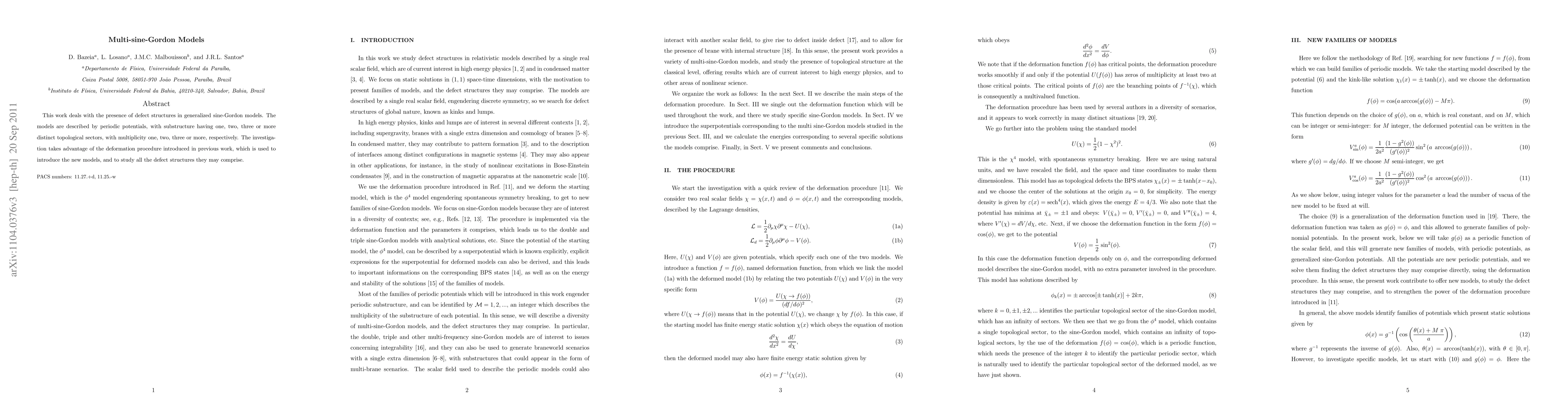 This work deals with the presence of defect structures in generalized sine-Gordon models. The models are described by periodic potentials, with substructure having one, two, three or more distinct topological sectors, with multiplicity one, two, three or more, respectively. The investigation takes advantage of the deformation procedure introduced in previous work, which is used to introduce the new models, and to study all the defect structures they may comprise.
