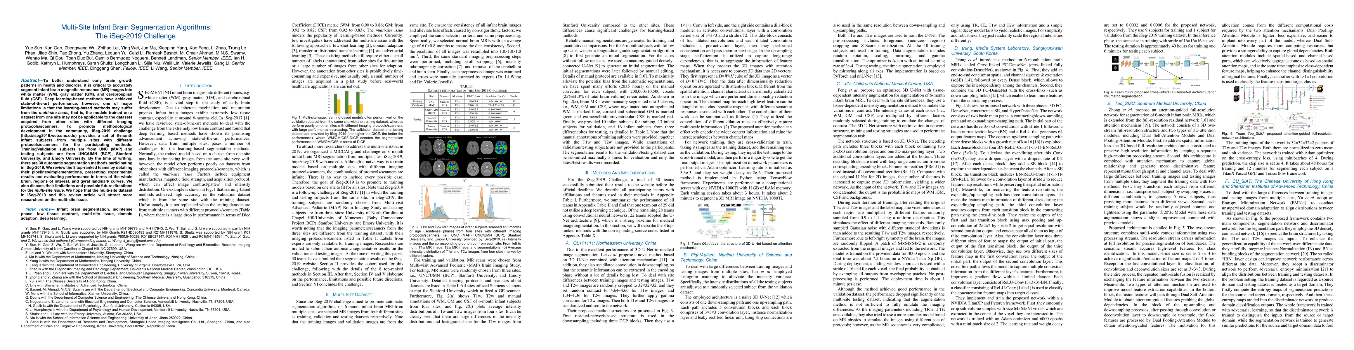 The iSeg-2019 challenge addresses the multi-site issue in infant brain MRI segmentation, providing a diverse dataset from various sites and scanners. The review of top-performing methods reveals their pipelines, experimental results, and limitations, aiming to encourage further research on this critical problem in the field.