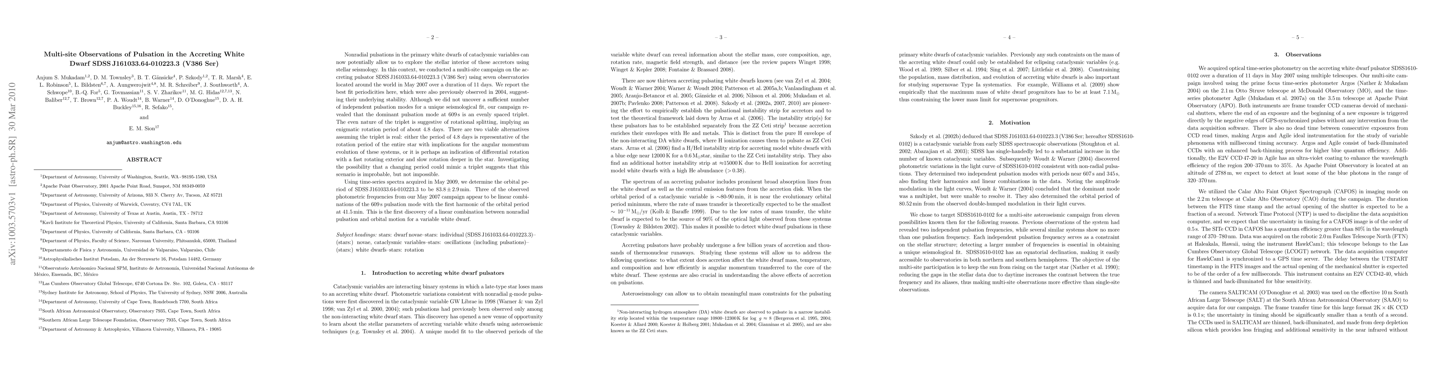 Nonradial pulsations in the primary white dwarfs of cataclysmic variables can now potentially allow us to explore the stellar interior of these accretors using stellar seismology. In this context, we conducted a multi-site campaign on the accreting pulsator SDSS J161033.64-010223.3 (V386 Ser) using seven observatories located around the world in May 2007 over a duration of 11 days. We report the best fit periodicities here, which were also previously observed in 2004, suggesting their underlying stability. Although we did not uncover a sufficient number of independent pulsation modes for a unique seismological fit, our campaign revealed that the dominant pulsation mode at 609s is an evenly spaced triplet. The even nature of the triplet is suggestive of rotational splitting, implying an enigmatic rotation period of about 4.8 days. There are two viable alternatives assuming the triplet is real: either the period of 4.8 days is representative of the rotation period of the entire star with implications for the angular momentum evolution of these systems, or it is perhaps an indication of differential rotation with a fast rotating exterior and slow rotation deeper in the star. Investigating the possibility that a changing period could mimic a triplet suggests that this scenario is improbable, but not impossible. Using time-series spectra acquired in May 2009, we determine the orbital period of SDSS J161033.64-010223.3 to be 83.8 +/- 2.9 min. Three of the observed photometric frequencies from our May 2007 campaign appear to be linear combinations of the 609s pulsation mode with the first harmonic of the orbital period at 41.5min. This is the first discovery of a linear combination between nonradial pulsation and orbital motion for a variable white dwarf.