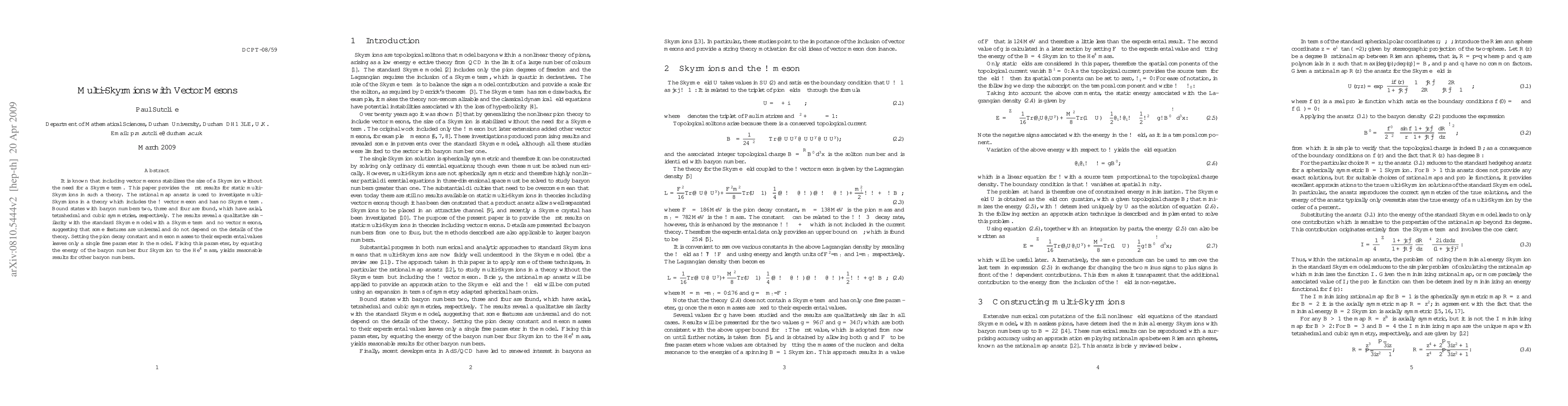 This paper investigates static multi-Skyrmions in a theory that incorporates omega vector mesons without a Skyrme term, finding bound states with baryon numbers two, three, and four exhibiting axial, tetrahedral, and cubic symmetries. The results indicate qualitative similarities with the standard Skyrme model, suggesting universal features.