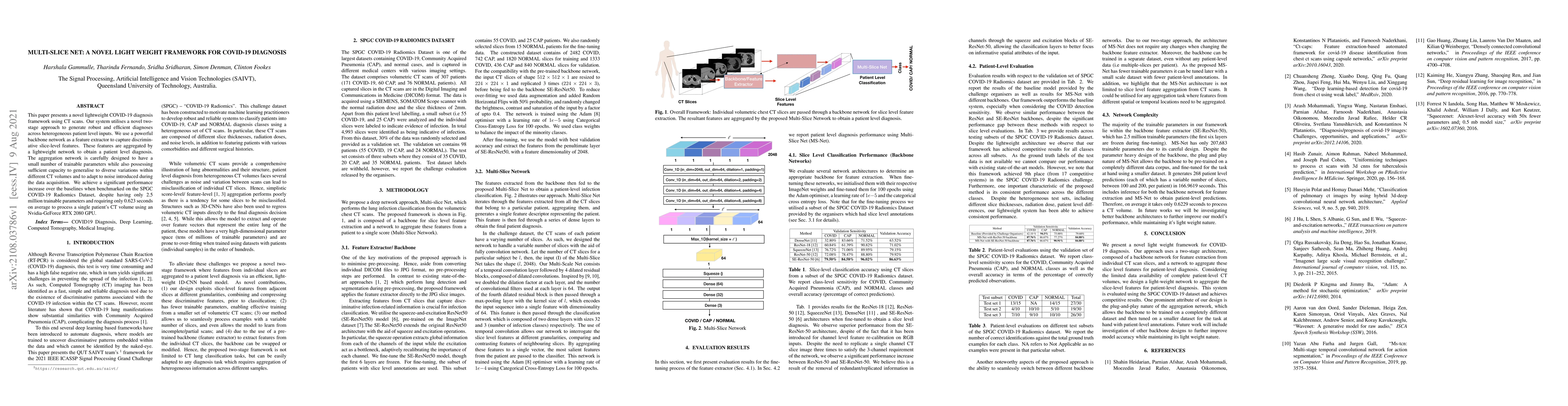 A lightweight framework called Multi-Slice Net improves COVID-19 diagnosis accuracy with a two-stage approach, using powerful feature extraction and aggregation networks to process CT scans in just 0.623 seconds.