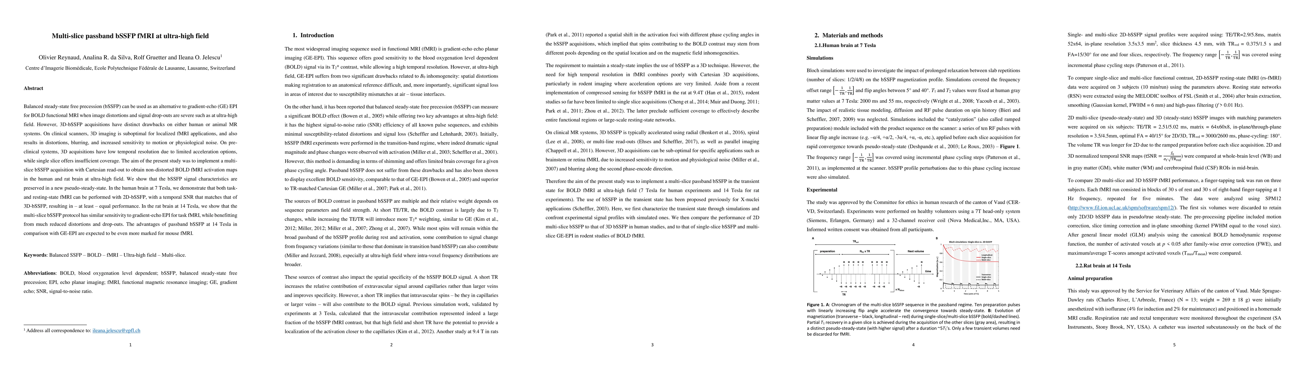 Balanced steady-state free precession (bSSFP) can be used as an alternative to gradient-echo (GE) EPI for BOLD functional MRI when image distortions and signal drop-outs are severe such as at ultra-high field. However, 3D-bSSFP acquisitions have distinct drawbacks on either human or animal MR systems. On clinical scanners, 3D imaging is suboptimal for localized fMRI applications, and also results in distortions, blurring, and increased sensitivity to motion or physiological noise. On pre-clinical systems, 3D acquisitions have low temporal resolution due to limited acceleration options, while single slice offers insufficient coverage. The aim of the present study was to implement a multi-slice bSSFP acquisition with Cartesian read-out to obtain non-distorted BOLD fMRI activation maps in the human and rat brain at ultra-high field. We show that the bSSFP signal characteristics are preserved in a new pseudo-steady-state. In the human brain at 7 Tesla, we demonstrate that both task- and resting-state fMRI can be performed with 2D-bSSFP, with a temporal SNR that matches that of 3D-bSSFP, resulting in - at least - equal performance. In the rat brain at 14 Tesla, we show that the multi-slice bSSFP protocol has similar sensitivity to gradient-echo EPI for task fMRI, while benefitting from much reduced distortions and drop-outs. The advantages of passband bSSFP at 14 Tesla in comparison with GE-EPI are expected to be even more marked for mouse fMRI.