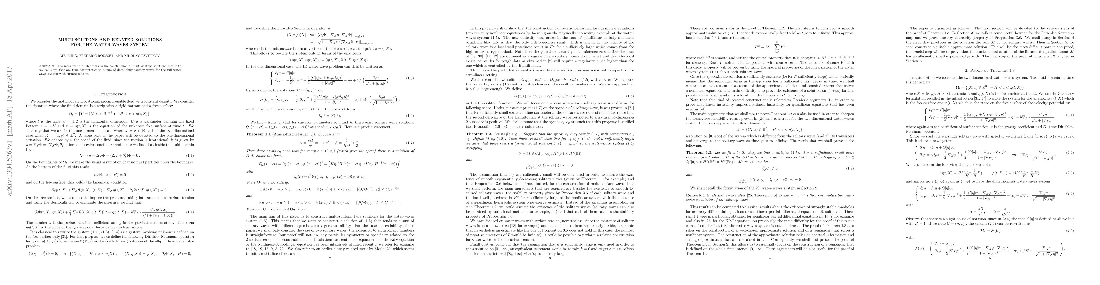 This paper constructs multi-soliton solutions that asymptotically approach sums of solitary waves for the full water waves system, including surface tension effects. These solutions provide insights into the behavior of complex water wave dynamics.