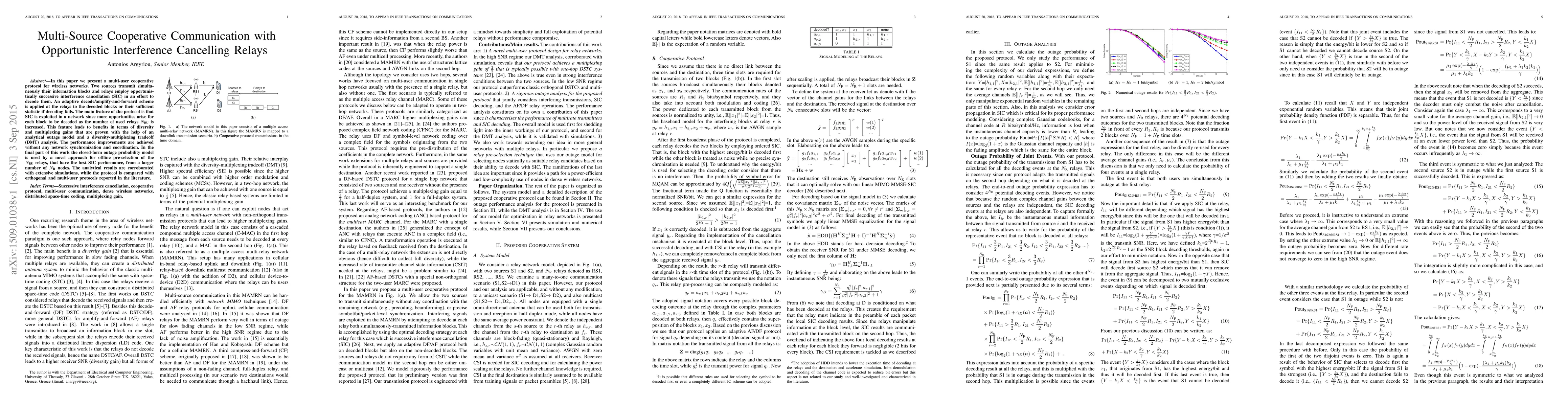 A new cooperative communication protocol uses opportunistic interference cancellation to improve diversity and multiplexing gains in wireless networks without requiring network synchronization or coordination. The protocol's performance is proven through analytical models and simulations.