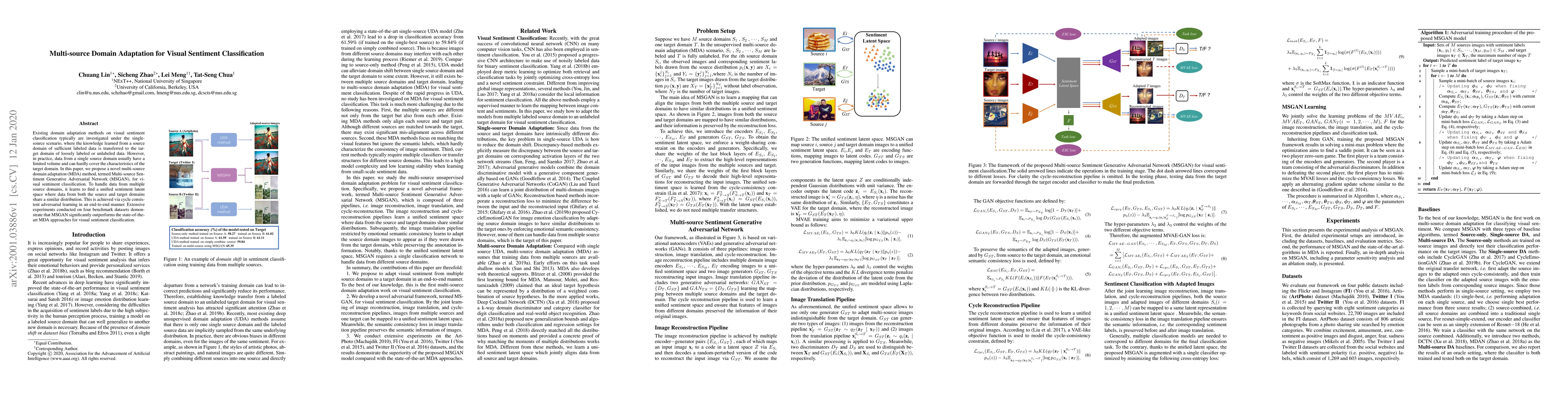 This paper proposes a Multi-source Sentiment Generative Adversarial Network (MSGAN) to improve visual sentiment classification through multi-source domain adaptation. MSGAN learns a unified sentiment latent space via cycle consistent adversarial learning, significantly outperforming existing methods on benchmark datasets.