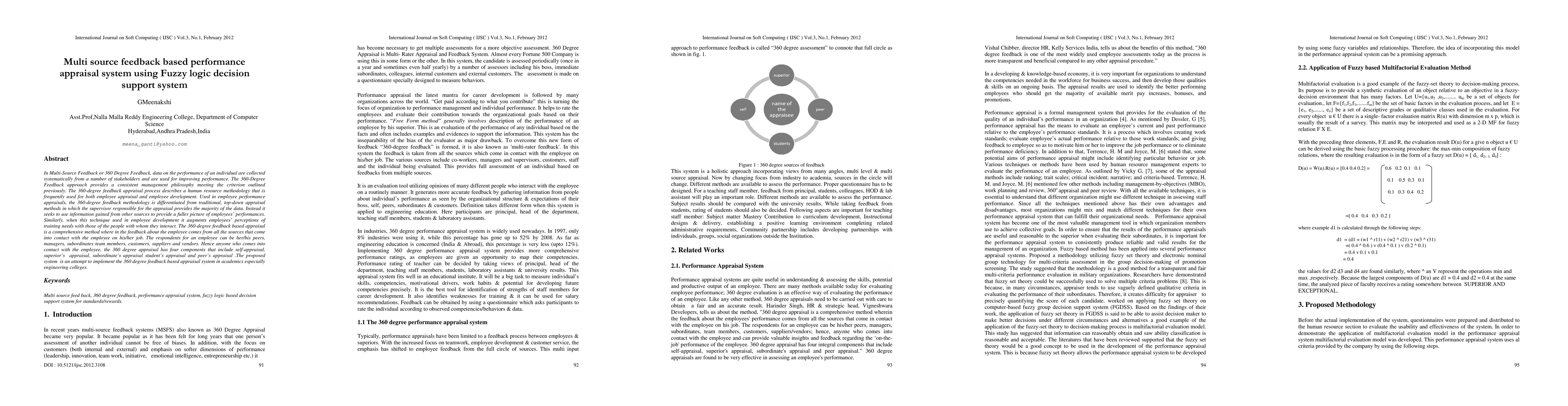 The paper proposes a 360-degree feedback appraisal system for engineering colleges using fuzzy logic, incorporating feedback from peers, managers, subordinates, and other stakeholders. It aims to provide a comprehensive performance evaluation, enhancing traditional top-down methods and aiding in employee development.