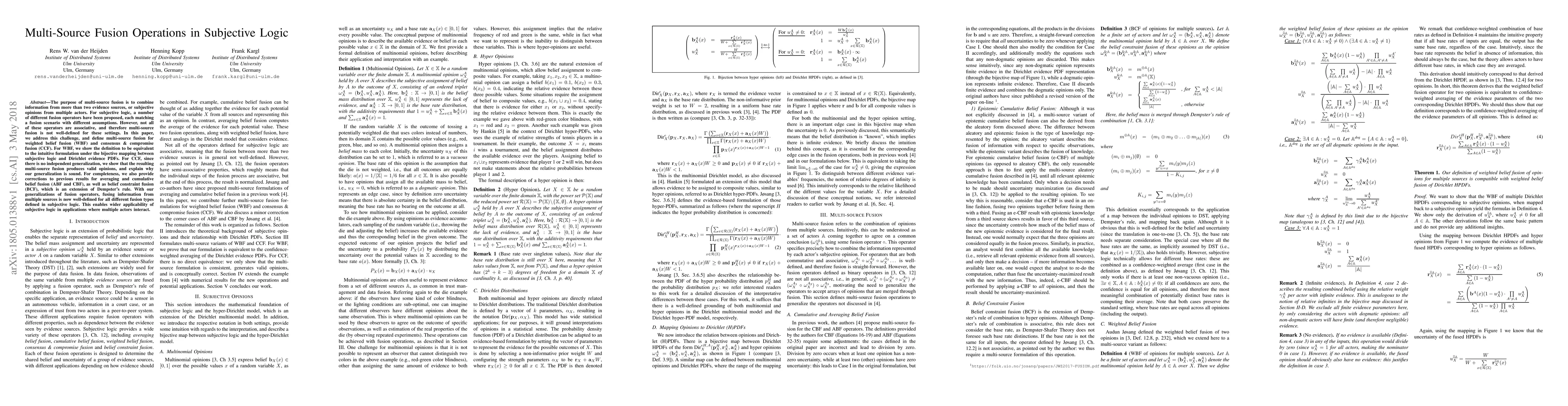 This paper defines multi-source fusion operations in subjective logic, addressing the lack of associativity in previous fusion operators. It generalizes weighted belief fusion and consensus & compromise fusion, ensuring well-defined multi-source fusion for all types, thus enhancing subjective logic's applicability in multi-actor environments.