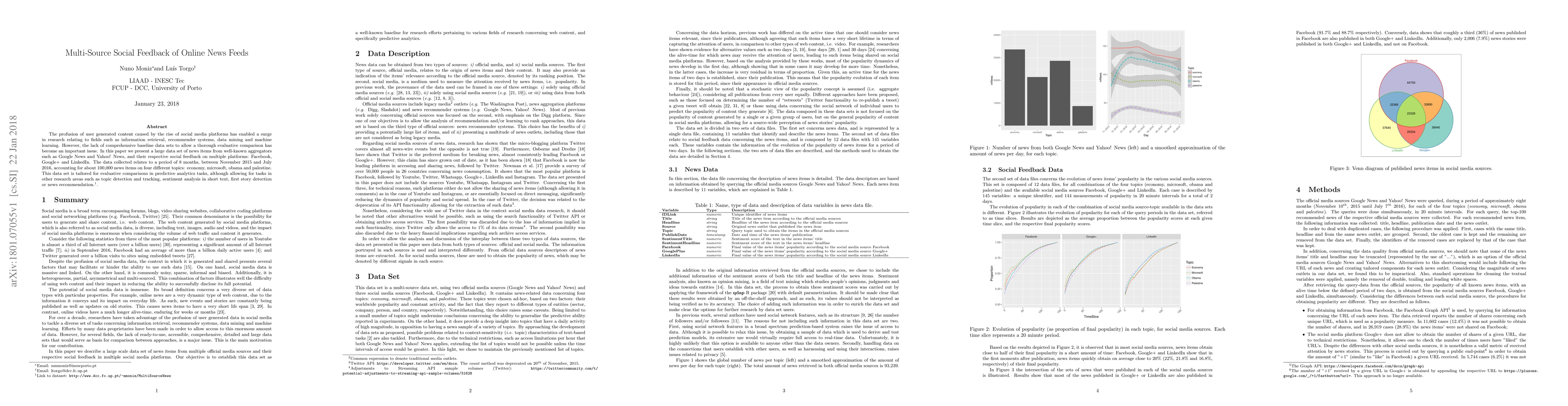 The profusion of user generated content caused by the rise of social media platforms has enabled a surge in research relating to fields such as information retrieval, recommender systems, data mining and machine learning. However, the lack of comprehensive baseline data sets to allow a thorough evaluative comparison has become an important issue. In this paper we present a large data set of news items from well-known aggregators such as Google News and Yahoo! News, and their respective social feedback on multiple platforms: Facebook, Google+ and LinkedIn. The data collected relates to a period of 8 months, between November 2015 and July 2016, accounting for about 100,000 news items on four different topics: economy, microsoft, obama and palestine. This data set is tailored for evaluative comparisons in predictive analytics tasks, although allowing for tasks in other research areas such as topic detection and tracking, sentiment analysis in short text, first story detection or news recommendation.