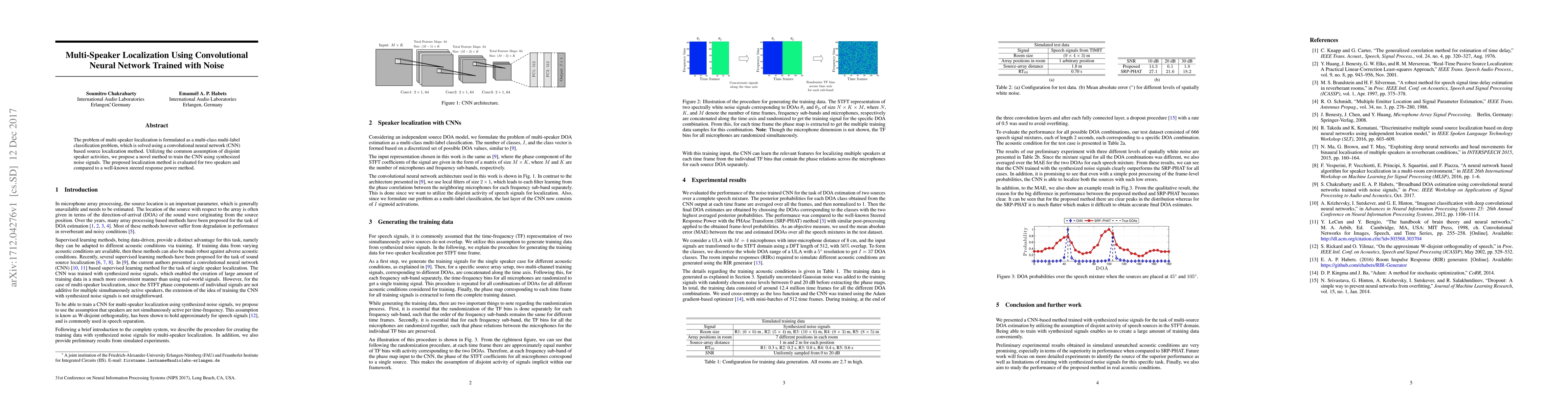 This paper proposes a CNN-based method for multi-speaker localization, trained with synthesized noise to handle disjoint speaker activities. The performance is evaluated for two speakers and compared against a steered response power method.