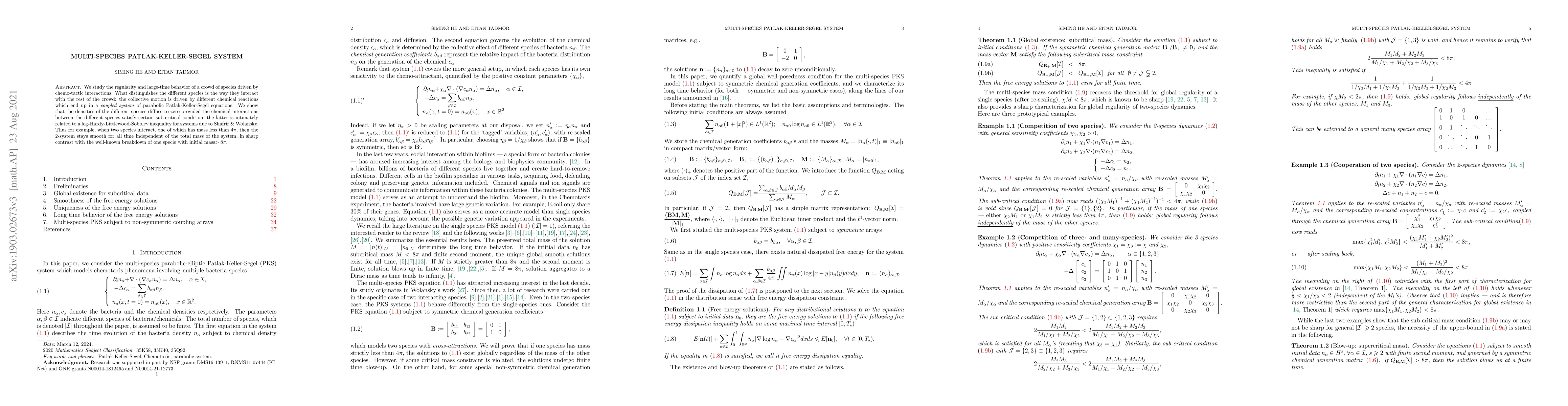 A crowd of species interacting through different chemical reactions can maintain smooth motion indefinitely if their interactions meet a certain sub-critical condition, unlike single-species breakdowns at higher masses.