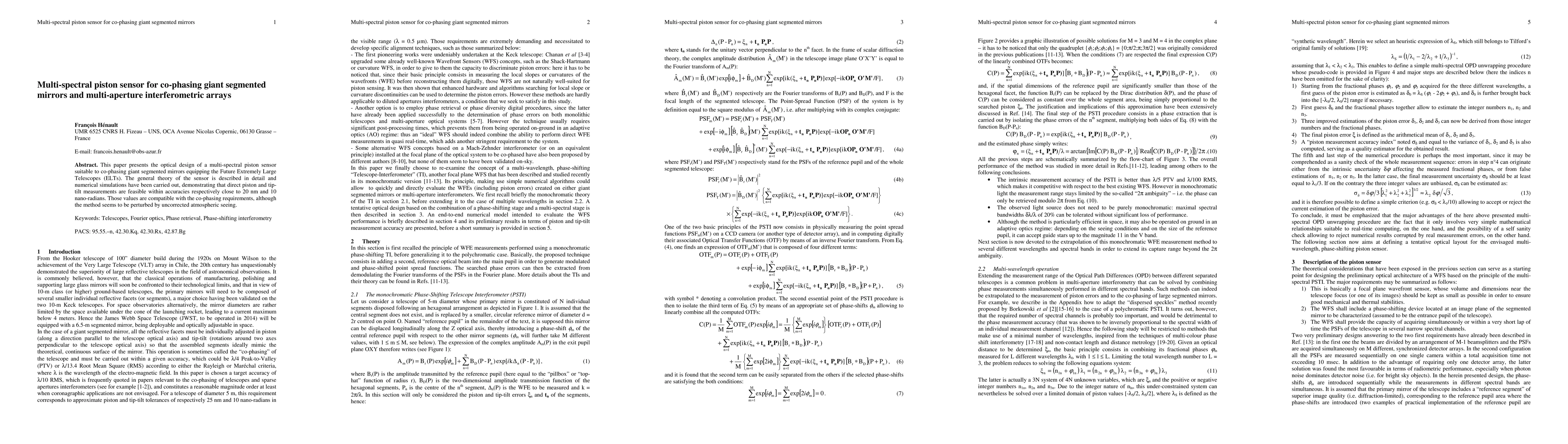 This paper introduces a multi-spectral piston sensor designed for co-phasing giant segmented mirrors in future Extremely Large Telescopes (ELTs). Numerical simulations show the sensor can achieve piston and tip-tilt measurements with accuracies of 20 nm and 10 nano-radians, respectively, though atmospheric seeing may affect its performance.