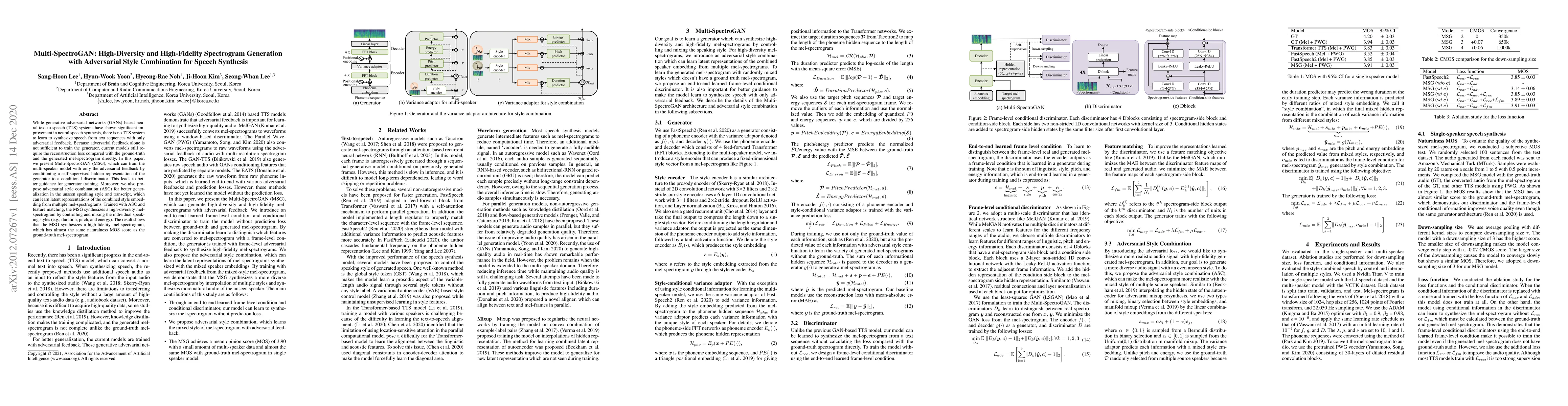 Multi-SpectroGAN (MSG) trains multi-speaker text-to-speech models using only adversarial feedback, achieving high-fidelity mel-spectrograms through adversarial style combination (ASC) for enhanced generalization and diversity. The MSG model demonstrates naturalness comparable to ground-truth mel-spectrograms.