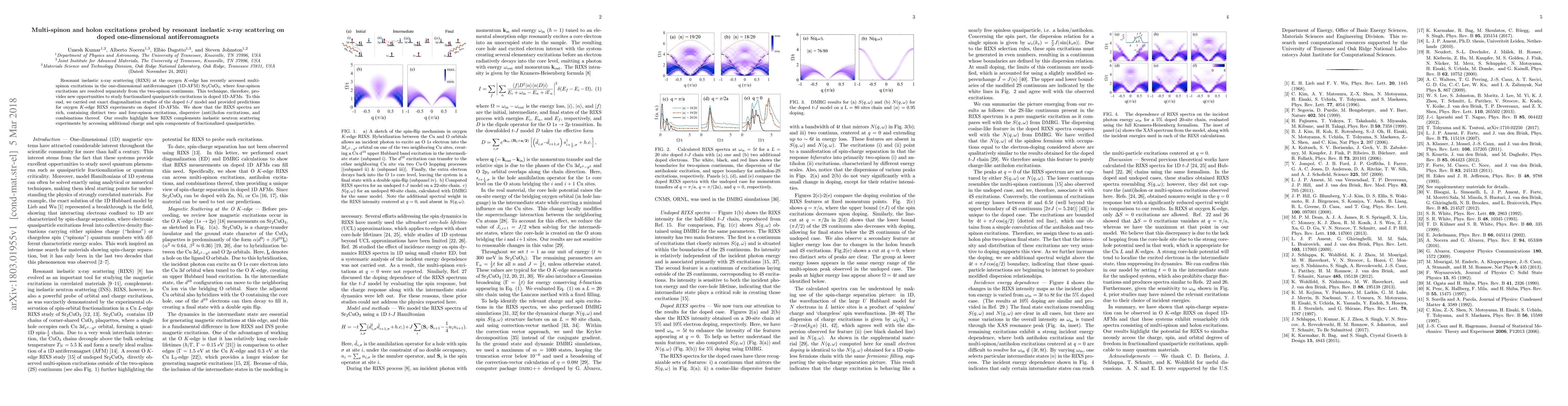 Resonant inelastic x-ray scattering (RIXS) at the oxygen K-edge reveals distinct multi-spinon excitations in doped one-dimensional antiferromagnets, providing new insights into fractionalized quasiparticles. The study predicts RIXS spectra rich in two- and four-spinon excitations and dispersive holon excitations, complementing inelastic neutron scattering.