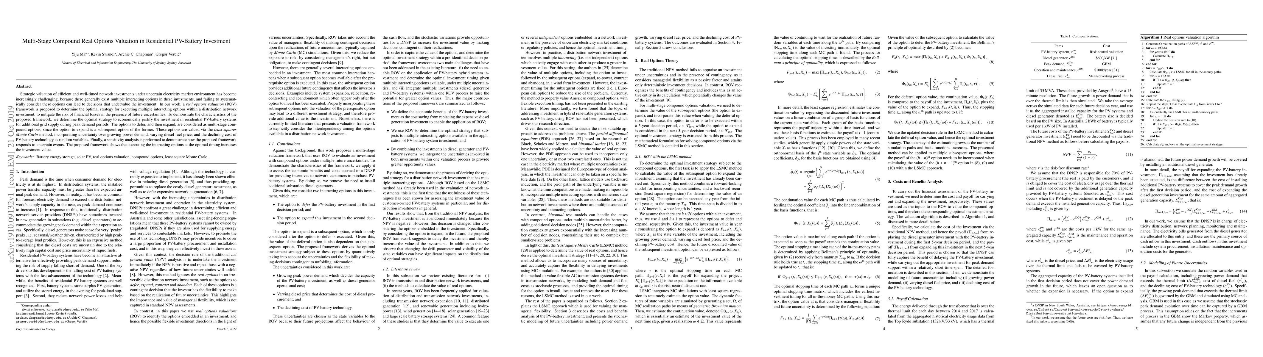 Strategic valuation of efficient and well-timed network investments under uncertain electricity market environment has become increasingly challenging, because there generally exist multiple interacting options in these investments, and failing to systematically consider these options can lead to decisions that undervalue the investment. In our work, a real options valuation (ROV) framework is proposed to determine the optimal strategy for executing multiple interacting options within a distribution network investment, to mitigate the risk of financial losses in the presence of future uncertainties. To demonstrate the characteristics of the proposed framework, we determine the optimal strategy to economically justify the investment in residential PV-battery systems for additional grid supply during peak demand periods. The options to defer, and then expand, are considered as multi-stage compound options, since the option to expand is a subsequent option of the former. These options are valued via the least squares Monte Carlo method, incorporating uncertainty over growing power demand, varying diesel fuel price, and the declining cost of PV-battery technology as random variables. Finally, a sensitivity analysis is performed to demonstrate how the proposed framework responds to uncertain events. The proposed framework shows that executing the interacting options at the optimal timing increases the investment value.