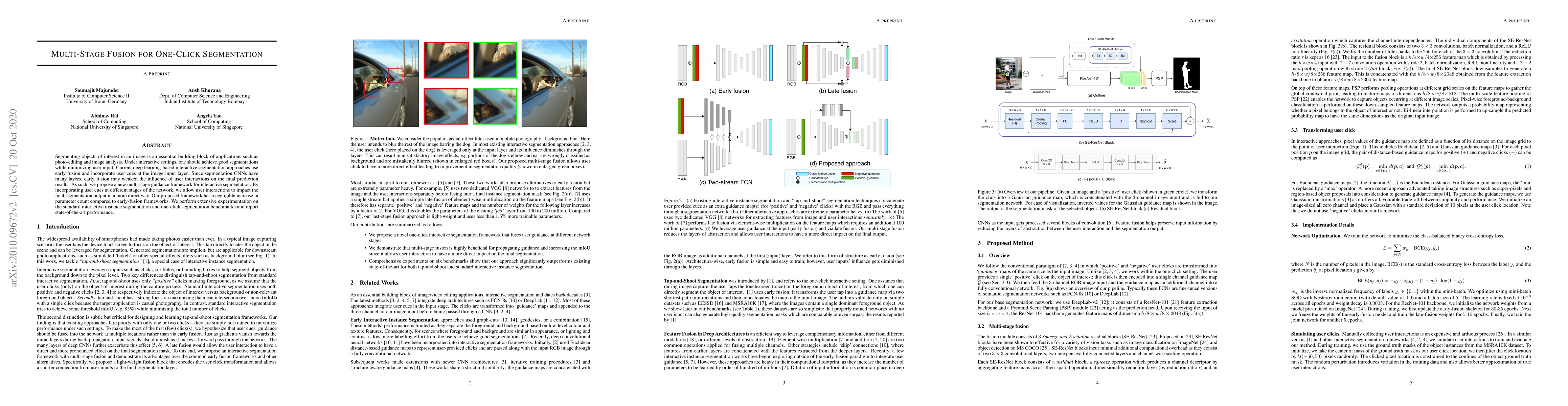 This paper proposes a multi-stage fusion framework for interactive segmentation that incorporates user cues at different network stages, enhancing the influence of user interactions on final segmentation outputs. The method achieves state-of-the-art performance on benchmarks with minimal increase in parameters compared to early fusion approaches.