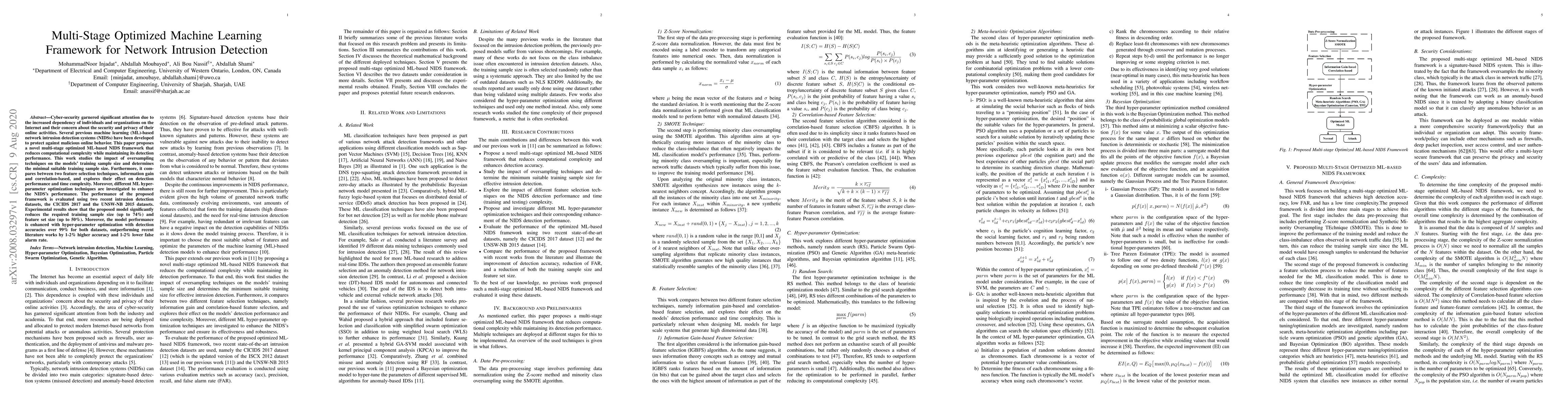 A new multi-stage optimized machine learning framework for network intrusion detection significantly reduces training sample size and feature set size while maintaining high detection performance.