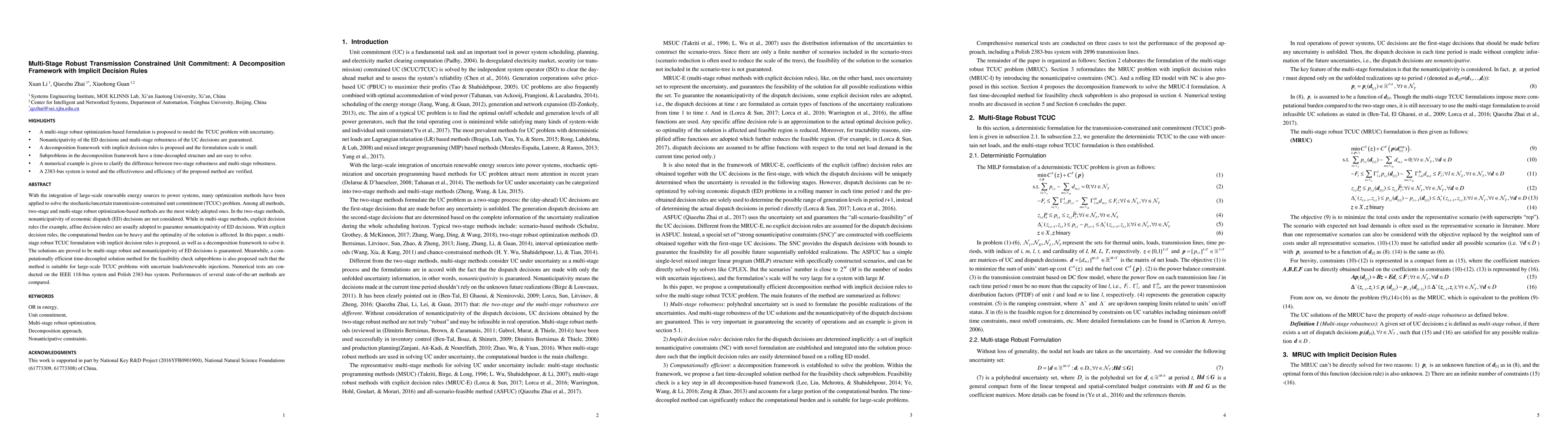 This paper proposes a multi-stage robust optimization framework for transmission-constrained unit commitment (TCUC) using implicit decision rules to enhance computational efficiency and solution optimality. The method is shown to be suitable for large-scale systems through numerical tests on IEEE 118-bus and Polish 2383-bus systems.
